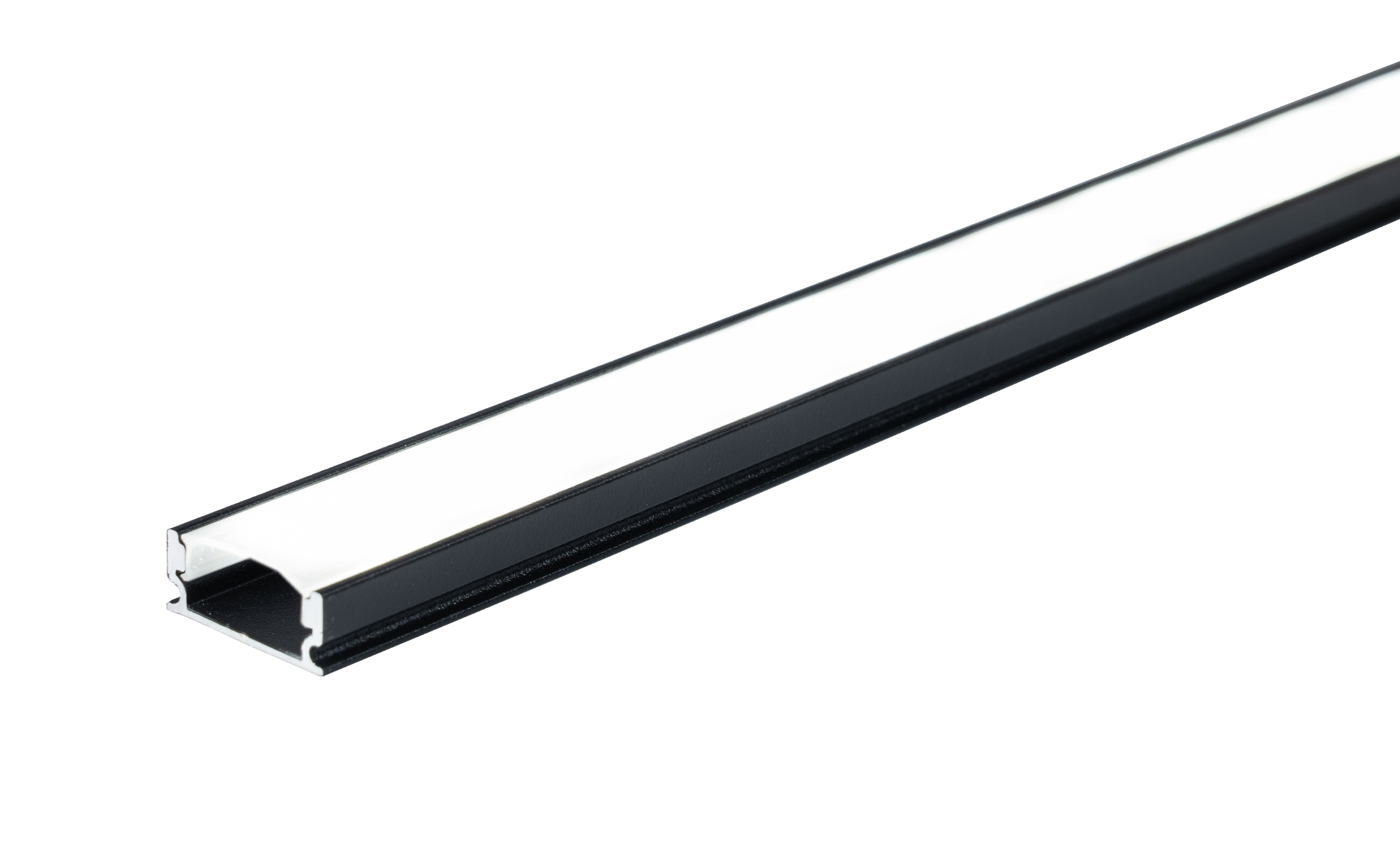 2m 17mm x 7mm schwarzes Aluminiumprofil, mit aufklickbarer Polycarbonatabdeckung, 2 Montageclips, Profilstutzen und Endkappe mit Verdrahtungsmöglichkeit
