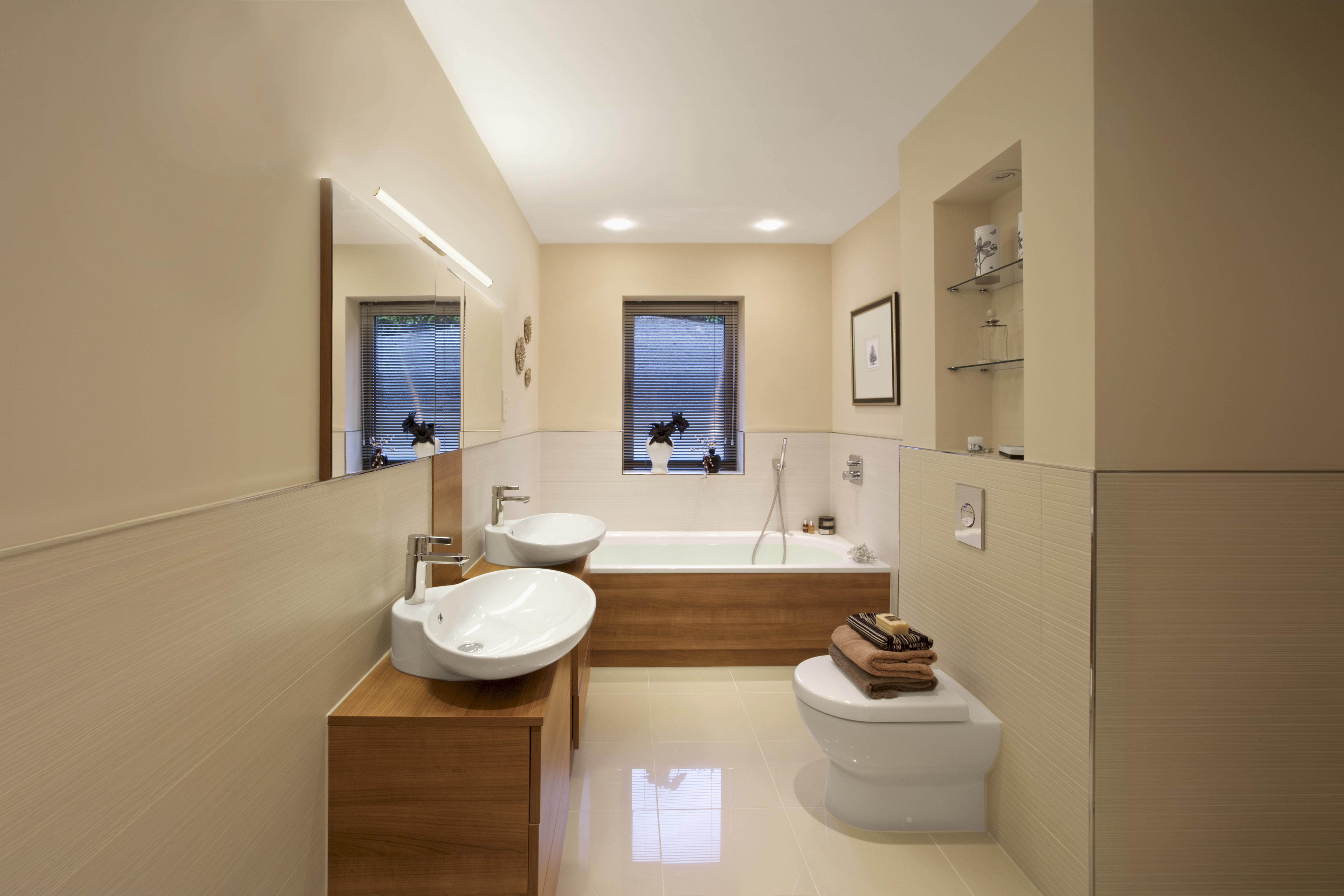 Dekorative Wandleuchte mit filigranem Design. Schutzklasse IP44, geeignet für Bäder und vergleichbare Räume. Ausgezeichnete Gleichmäßigkeit der Beleuchtung. Integrierter CCT-Schalter zur Farbtemperaturwahl (3000K-4000K).