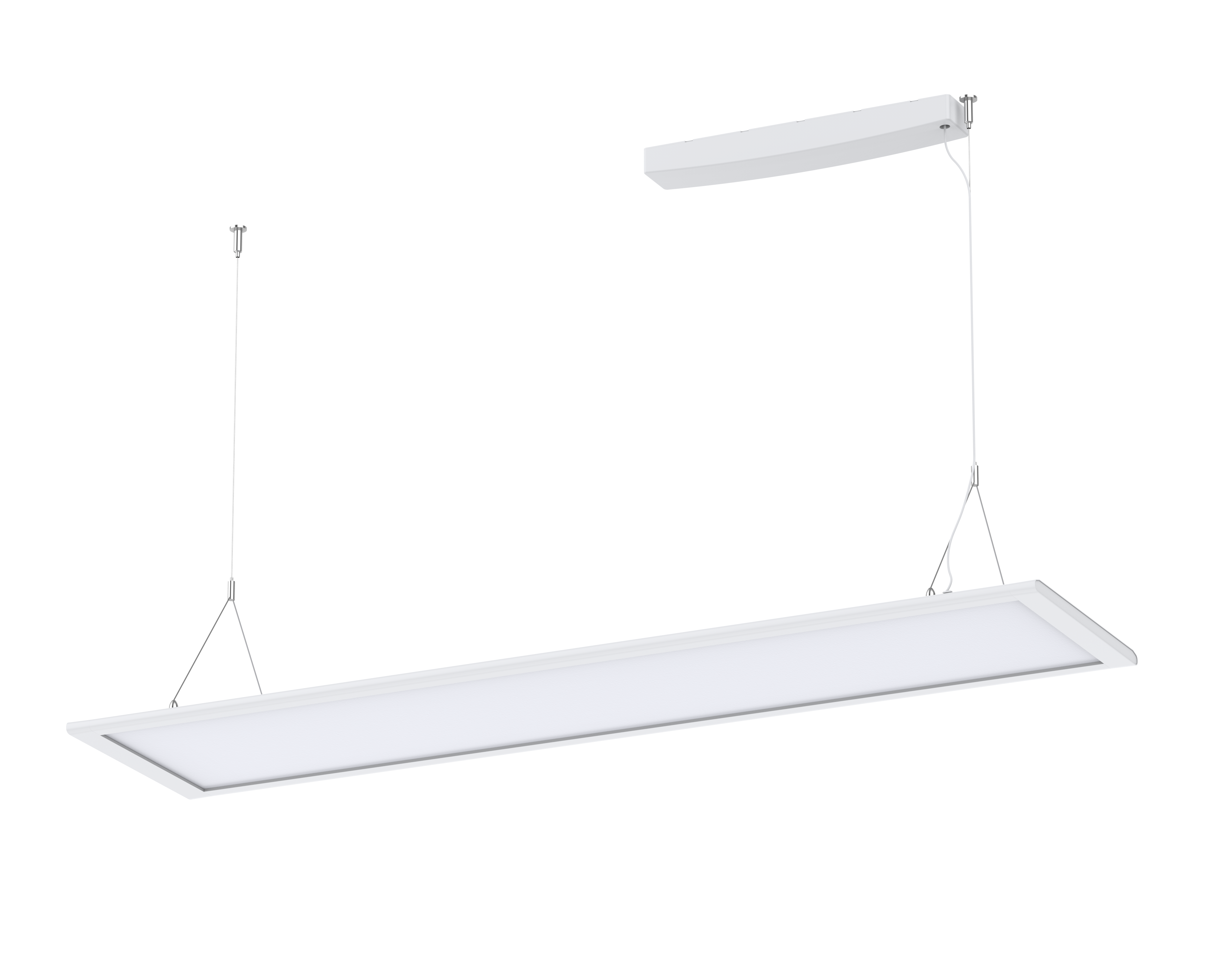 Elegantes direkt/indirekt abgependeltes LED-Panel. Klares, minimalistisches Design. Geeignet für Büroarbeitsplätze (UGR