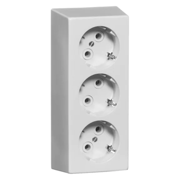 Aufputzsteckdose Aufputz mit Erde, 3-polig 2-polig, für 3 Winkelstecker, weiß