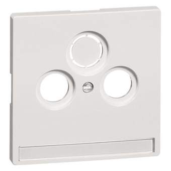 Zentralplatte für KOAX-Antennensteckdose nach DIN 45 330, mit 2 Schrauben für diverse Fabrikate, mit Beschriftungsfeld 7 x 64 mm