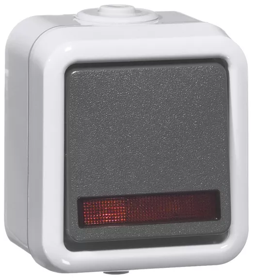Aufputz-Wippschalter, spritzwassergeschützt, IP54, 2-polig mit Kontrollleuchte