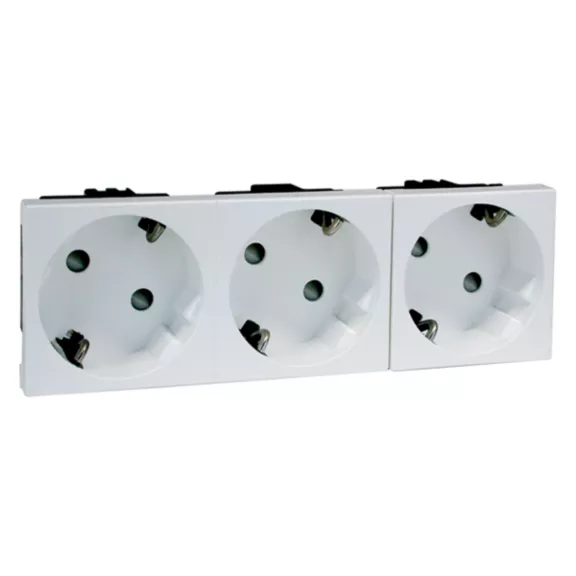 Concept45 Einbausteckdose 3-fach, 2-polig, Kindersicherung, Steckklemme, 33 Grad geneigt, wohnweiß