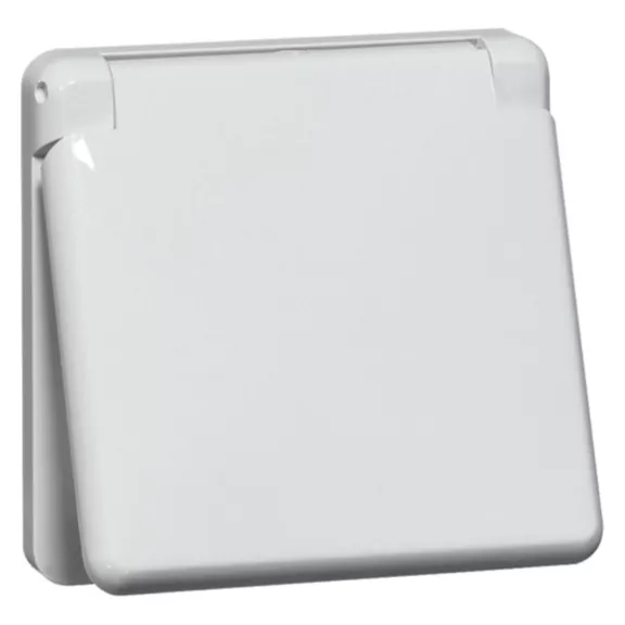 Standard-Steckdose mit Erdung, 1-polig IP44, einteilige Abdeckplatte, weiß