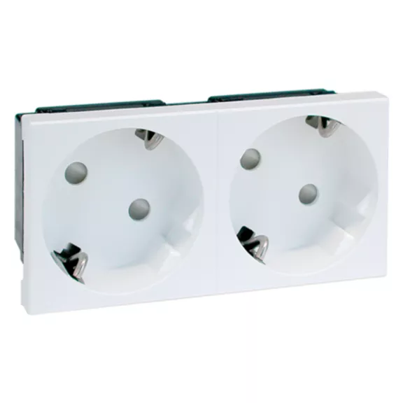 Concept45 Einbausteckdose 2-fach, 2-polig, Kindersicherung, Steckklemme, 33 Grad geneigt, living white