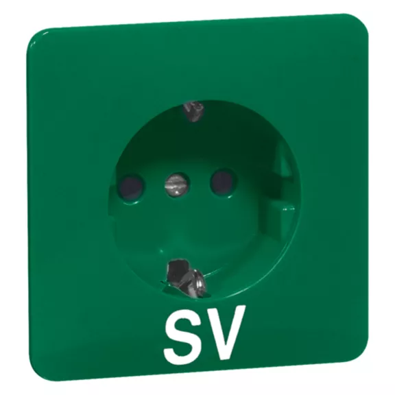 Standardsteckdose mit Erde, 1-polig, Schraube, Aufdruck SV, grün