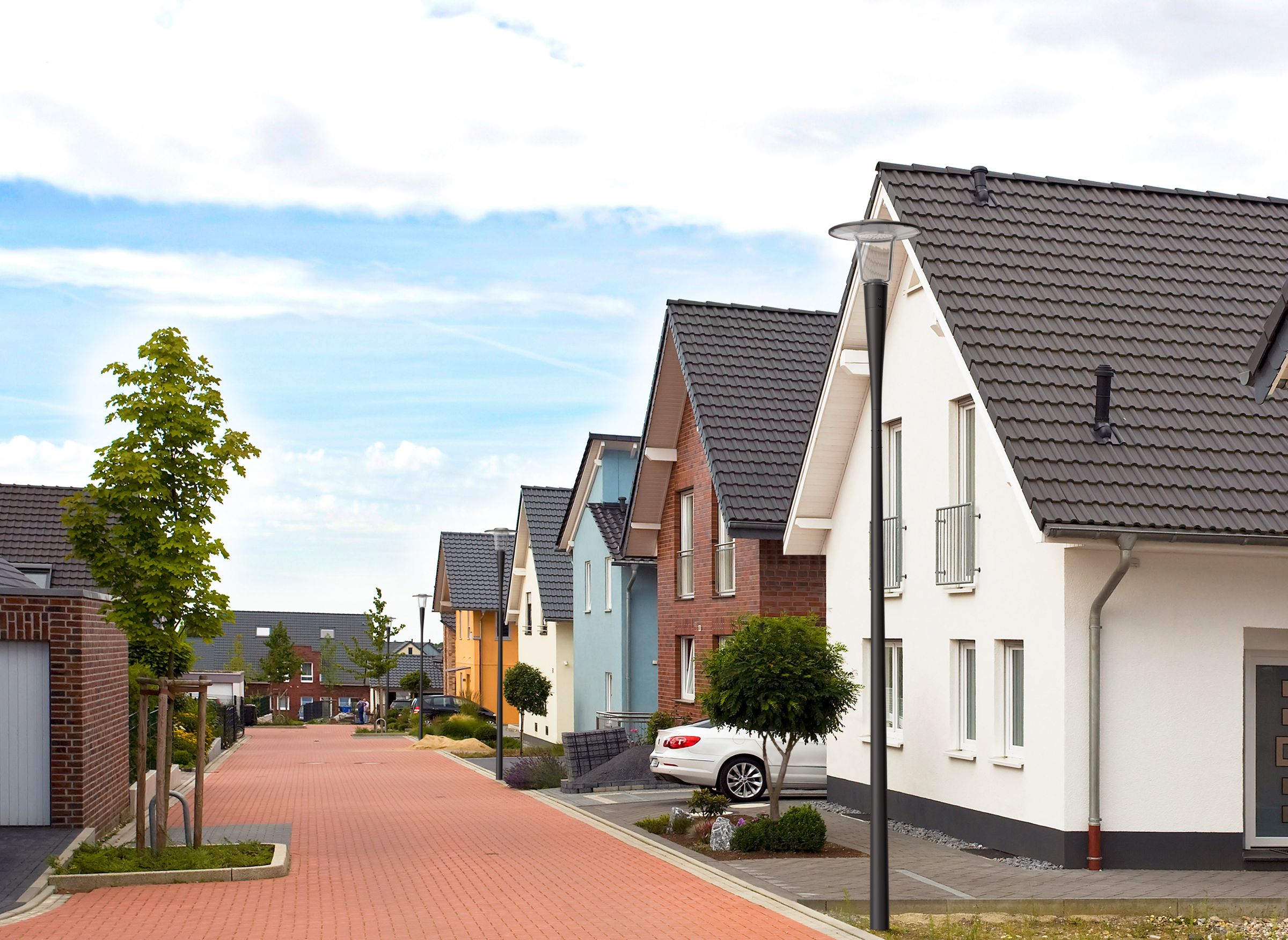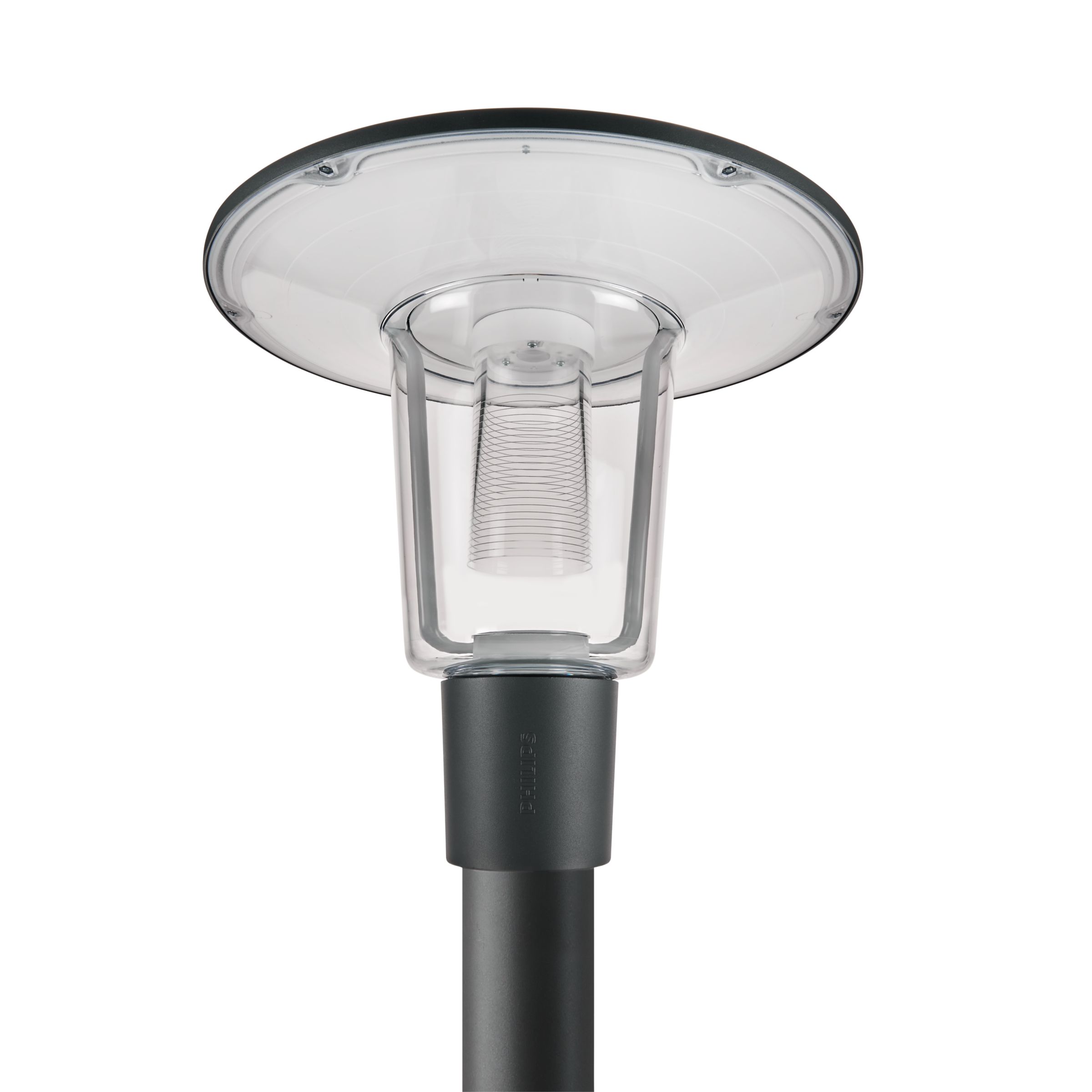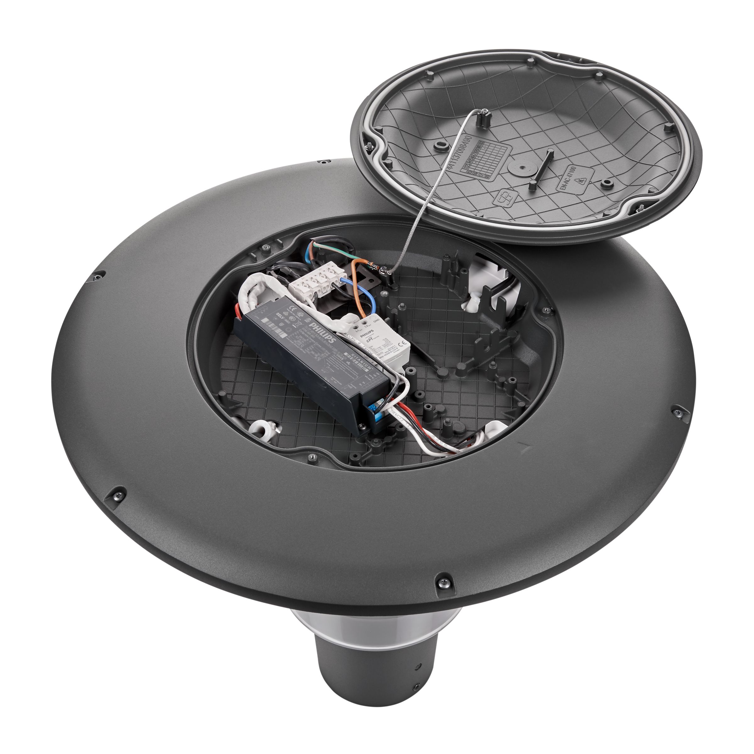 Urban road & street light, Aluminium, Grau, An-/Aufsatz für Durchmesser 76mm, Regelbares Netzteil, 2117 lm, 22 W, 96 lm/W, 3000 K, (0.430, 0.400) SDCM 3, CRI70, Asymmetrisch, IP66 | Schutz gegen Eindringen von Staub, strahlwassergeschützt, IK10 | 20 J vandalismusgeschützt, SchutzklasseII, Überspannungsschutz bis 6 kV im Gegentaktmodus und bis 8 kV im Gleichtaktmodus, Kabel (0,2m) ohne Steckverbinder, Freie Anschlussleitungen
