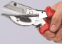 94 35 215 Gehrungsschere Zum quetschfreien Schneiden von Kunststoff-, Gummi- und weichen Holzprofilen, auch für Flachbandkabel. Auswechselbare Schneidauflage mit Anschlagwinkel für 45-Schnitte und Markierungen für 60-, 75- und 90-Schnitte. Mit Öffnungsfeder und Sperrklinke. - Klingenlänge: 56mm.