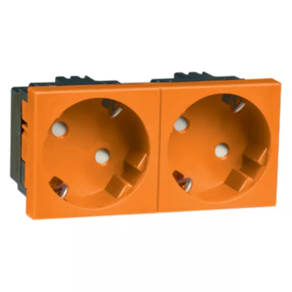Eingebaute Steckdose Concept 45 mit Steckklemmen, 2-polig, 10/16 A 250 V, mit Anschlussanschlüssen nach VDE 06202-fach, 33° geneigt, mit Kinderschutz