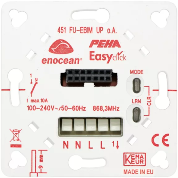 Zusätzlich zu den bidirektionalen Funktionen ermöglicht die Easyclick-Empfänger-Variante mit integrierter Energiemessung (Energie-Messchip) die Erfassung von Energiewerten des angeschlossenen Verbrauchers. Eine Visualisierung des aktuellen Stromverbrauchs, der Einschaltstunden und des gesamten Energieverbrauchs ist möglich. Funktionen, Parameter und technischen Daten ansonsten wie D 451 FU-EBI UP o.A.