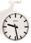 Innenuhr, rund, sehr stabiles, weiß lackiertes Metallgehäuse (RAL 9016) für hohe Beanspruchungen, mit stoßgeschützen Plexigläsern. Weiße Zifferblätter mit schwarzen Balkenziffern, Zifferblattdruck nach DIN 41091. Schwarze DIN-Balkenzeiger für Stunden- und Minutenanzeige. Batteriebetrieb 2 x 1,5 V, Lieferung inkl. Batterien (mittlere Laufzeit ca. 4 Jahre).