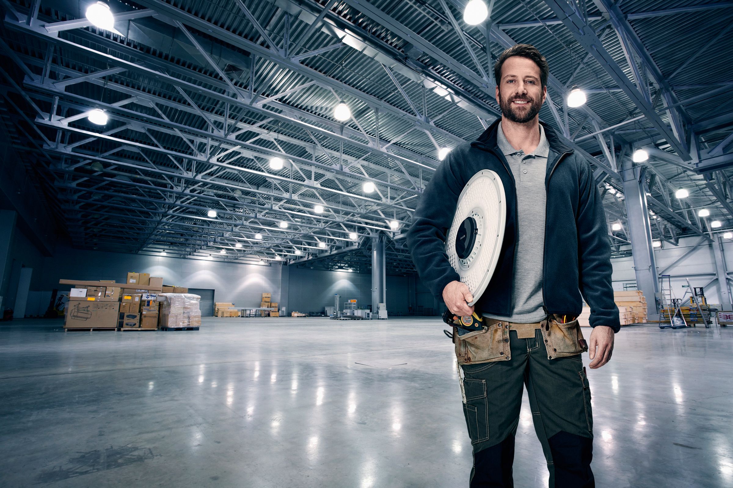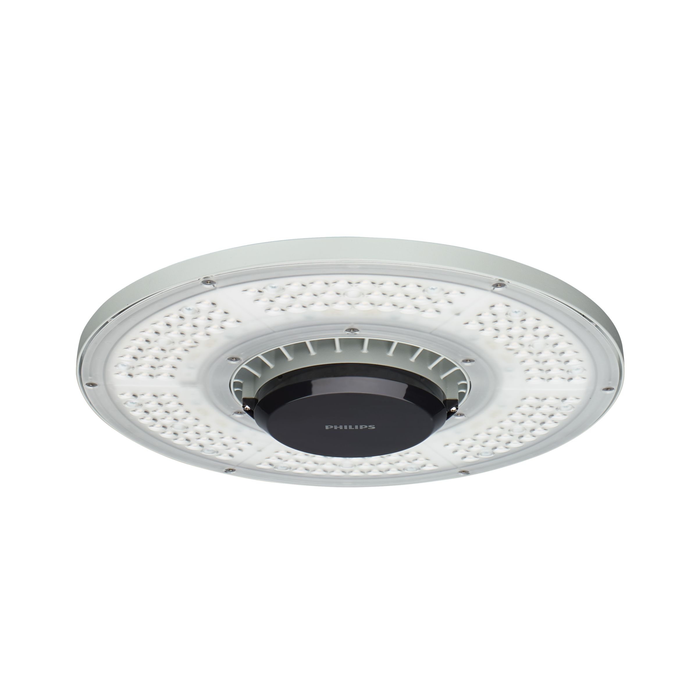 Erfüllt das CoreLine Versprechen Innovativ, einfach zu installieren und hochwertig. Mit bis zu 145lm/W und einer Lebensdauer von 50.000 Stunden (L80) werden die Gesamtbetriebskosten weiter optimiert. Die kompakte und robuste LED-Hallenleuchte aus Aluminium ist in drei Baugrößen mit 10.000/20.000/25.000 Lumen verfügbar. Dadurch ist sie der ideale Ersatz für konventionelle Hallenleuchten mit 250W/400W Hochdruckentladungslampen. Der elektrische Anschluss ist einfach zu handhaben, da die Leuchte nicht geöffnet werden muss und über einen vormontierten IP65-Industriestecker verfügt. Die rotationssymmetrische Leuchte mit Einpunktaufhängung ist zudem kleiner und leichter als herkömmliche Leuchten, dadurch lässt sie sich auch sehr gut handhaben. Die speziellen Linsenoptiken sorgen für herausragende Lichtverteilung in zwei Ausstrahlungswinkeln (WB/NB). Die CoreLine Highbay erfüllt die Anforderungen gemäß IFS/HACCP für die Lebensmittelindustrie. Die Leuchte ist Dali-regelbar, wodurch weitere Einsparungen realisiert werden können.