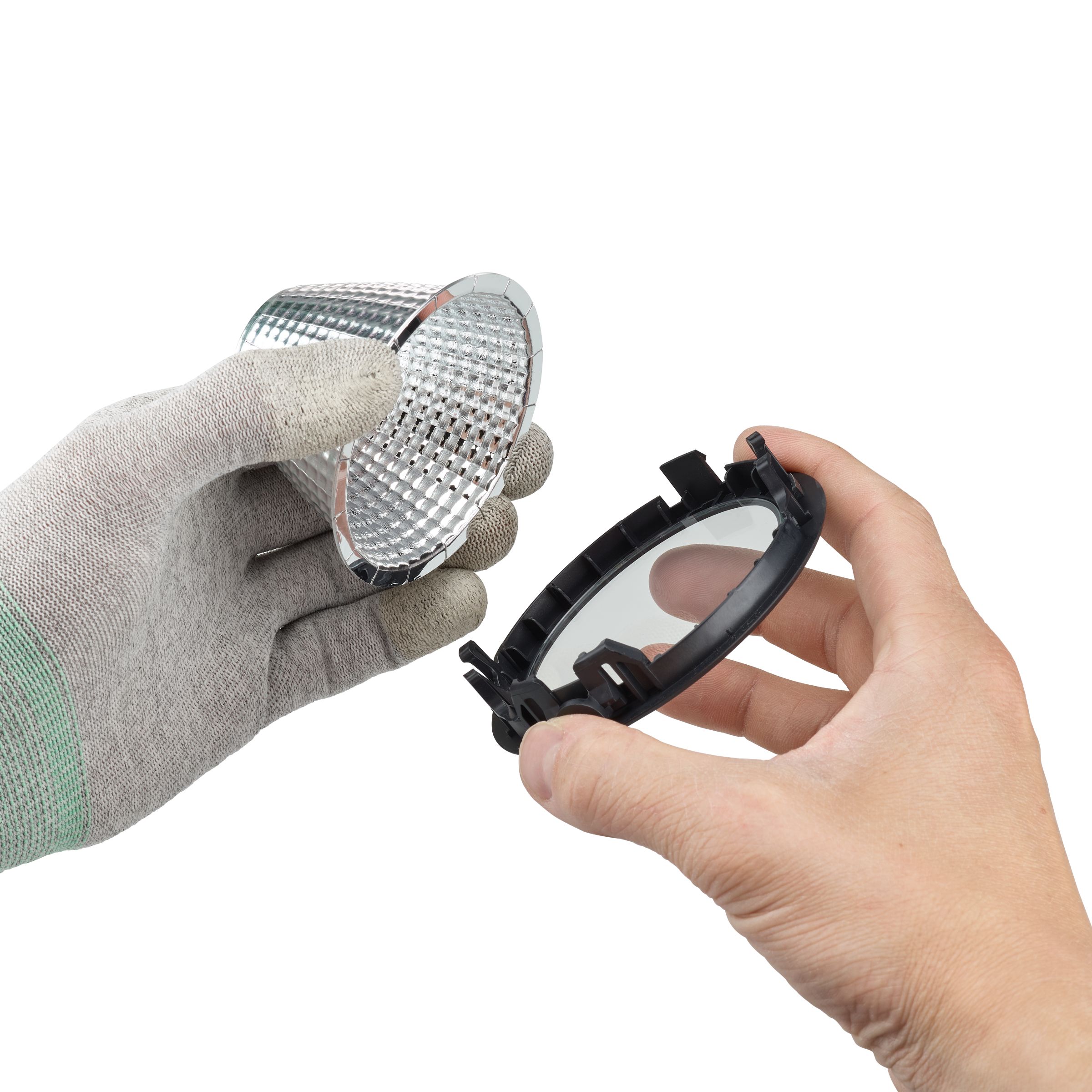 D125 mm, Aluminium, Weiß, Signalweiß (RAL9003), Netzgerät extern (Ein/Aus), 2000 lm, 97 lm/W, 3000 K, (0.434, 0.403) SDCM 3, Engstrahlend, PerfectAccent-Reflektoren, 0,2 J Standard, SchutzklasseII, Schnellsteckverbinder und Zugentlastung