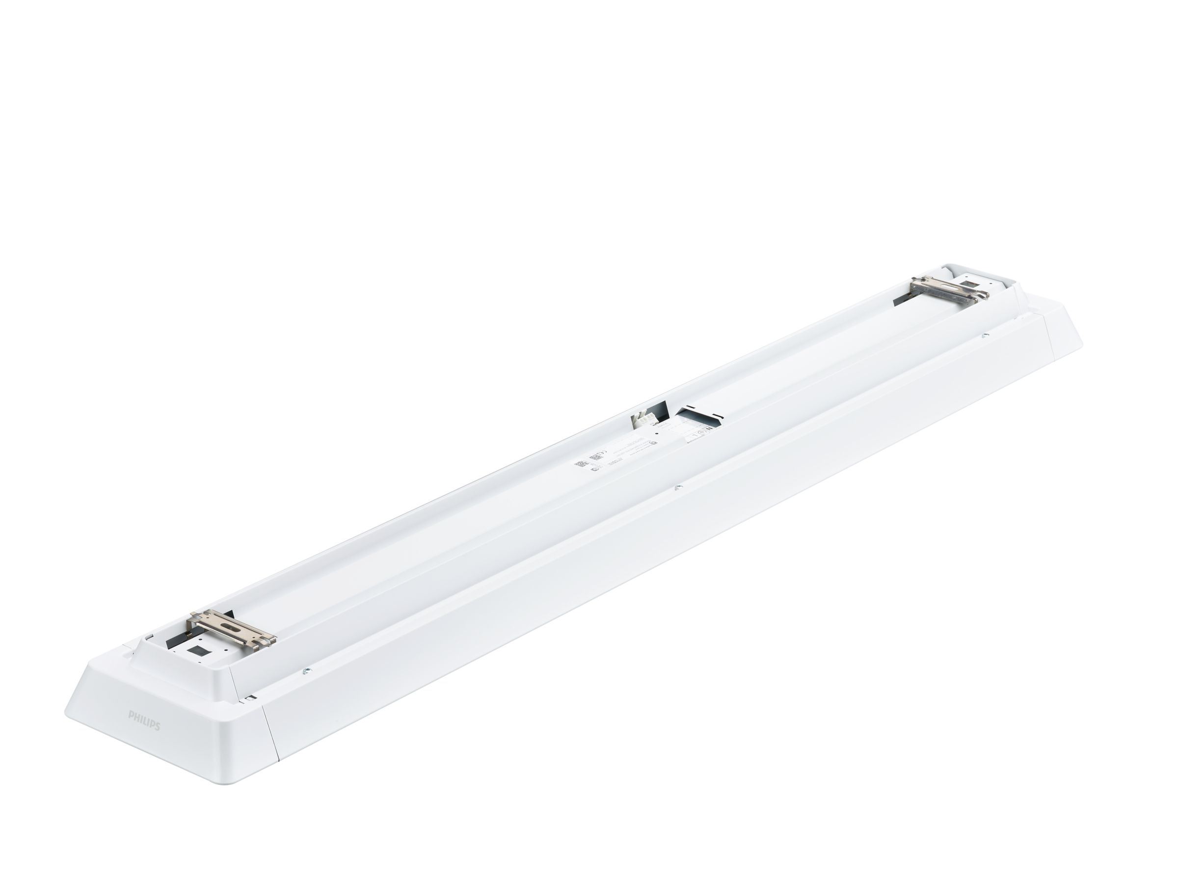 1470x200 mm; H73 mm, Stahl, Weiß, Signalweiß (RAL9003), Netzteil mit DALI-Schnittstelle, 5200 lm, 38 W, 137 lm/W, 4000 K, (0.43, 0.40) SDCM 3, CRI90, UGR19, Breitstrahlend (WB), Texturiert, Polykarbonat, ?IP20 | Fernhalten von Fingern, IK02 | 0,2 J Standard, SchutzklasseI, Schnellsteckverbinder, 5-polig