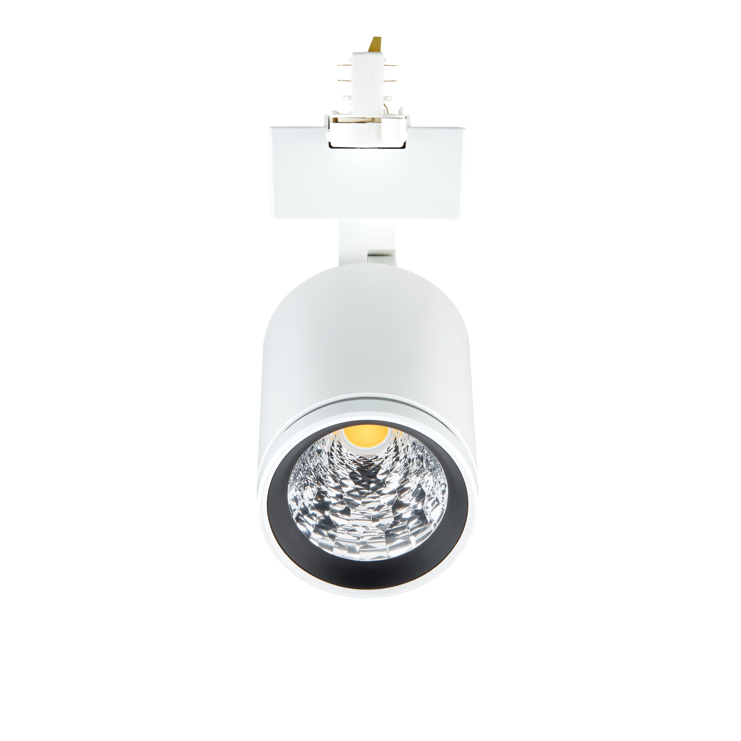 Compact, track projector, Aluminium, Weiß, Signalweiß (RAL9003), Netzteil (Ein/Aus), 2000 lm, 20.5 W, 105 lm/W, 3000 K, (0.434,0.403)3, Tiefstrahlend (NB), Klar, Gehärtetes Glas, ?IP20 | Fernhalten von Fingern, IK02 | 0,2 J Standard, SchutzklasseII, 3-phasige Stromschiene
