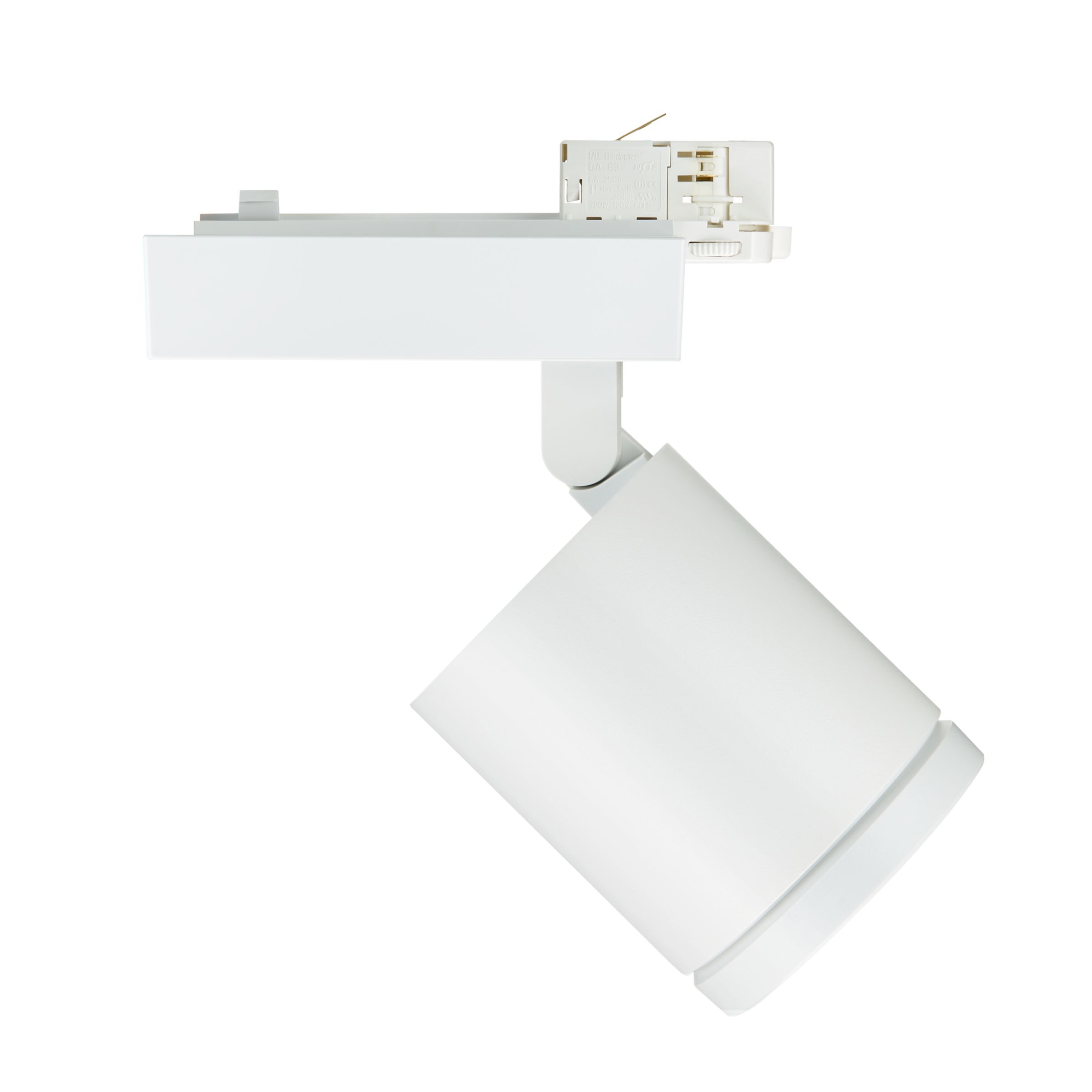 Performance, track projector, Aluminium, Weiß, Signalweiß (RAL9003), Netzteil (Ein/Aus), 6000 lm, 50 W, 122 lm/W, 3000 K, (0.434,0.403)3, Tiefbreitstrahlend (MB), Klar, Gehärtetes Glas, ?IP20 | Fernhalten von Fingern, IK02 | 0,2 J Standard, SchutzklasseII, 3-phasige Stromschiene