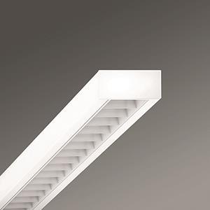 Stahlblechgehäuse, rechteckiger Querschnitt, Stirnseiten aus Kunststoff mit integriertem Lichtbandverbinder, Lichtverteilung direkt strahlend mittels Parabolraster seidenmatt aus Aluminium, reflexionsverstärktem, selbstrastend, beidseitig abklappbar, bei Lichtbandmontage Raster optisch durchlaufend, Lichtfarbe neutralweiß (840) mit sehr guter Farbkonsistenz und hoher Farbwiedergabe Ra=80. Geeignet für Bildschirmarbeitsplätze, rundumentblendet 65°