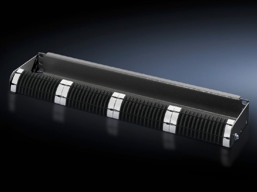 LWL-Rangierpanel, 1 HE, 1 HE, RAL 9005, zum frontseitigen Führen und Verteilen von, Glasfaser- und Kupferkabel