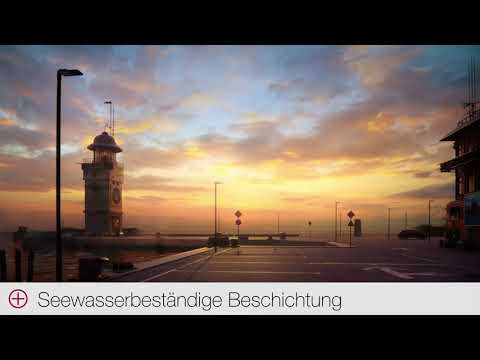 Clevere Kombination von Strahler und Mastleuchte in Einem. Gehäuse aus korrosionsbeständigem Aluminium-Druckguss, seewasserbeständig pulverbeschichtet. Anstellwinkel in 5°-Schritten mit Winkelskala einstell, und verriegelbar. Serienmäßig mit Membranventil zur Kondenswasservermeidung. Abdeckung Einscheiben-Sicherheitsglas (ESG) klar, Rand bedruckt. Scheibe mit Gehäuse verschraubt. Linsensystem aus Kunststoff (PMMA). Auswechselbare LED nach Zhaga Standard. Symmetrische Lichtverteilung. Konstant-Lichtstrom-Regelung (CLO). Mit Programmierschnittstelle NFC. Vormontierte Anschlussleitung, Länge 0, 5 m. Modulbauweise: Zur Leuchte ist immer ein Montagemodul mit zu bestellen.