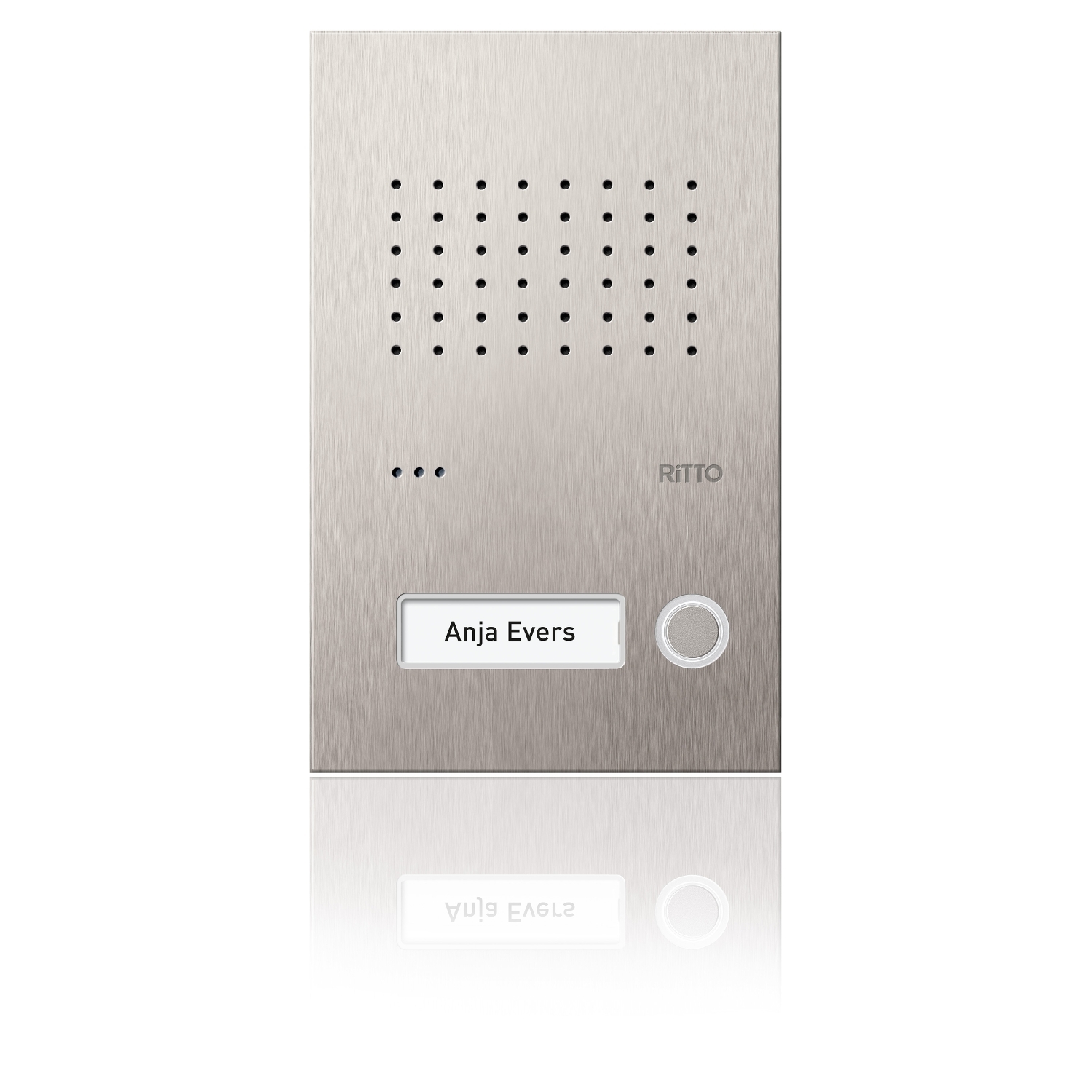 Edelstahl-Türstation mit vorinstalliertem Einbaulautsprecher. Frontplatte 2,5 mm Edelstahl. Beleuchtete Namensschilder. Klingeltasten mit weißen LEDs. Vandalismusgeschützt und gravierfähig. UP-Kasten nur 52 mm tief. Verdeckte Montageelemente bis zu einer Größe von 6 Klingeltasten.