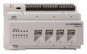 REG-Gigabit-Switch, 4 x RJ45-Frontports 10/100/1000 Mbit/s, 6 x Installationsports 10/100/1000 Mbit/s, PoE-Speisung der Installationsports mittels externer Spannungsversorgung nach Leistungsbedarf, multicastfähig, VLAN-Tagging, lichtgrau (ähnlich RAL 7035), 8 TE