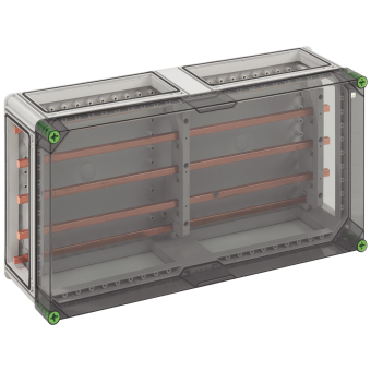 250 A, mit Cu-Schienen, L1...L3: 12 x 10 mm, N: 12x10 mm, PE: 12x10 mm, ohne Klemmen, zur individuellen Bestückung, 3 x Gehäuseverbinder (GGV)