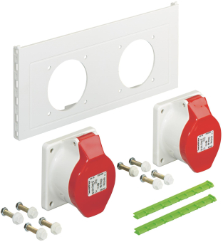 Steckdosenflansch Montageset inkl. Befestigungsmaterial und Steckdosen, 2 x Flanschverbinder (GFV), Abmessungen: 320 x 179 x 3mm