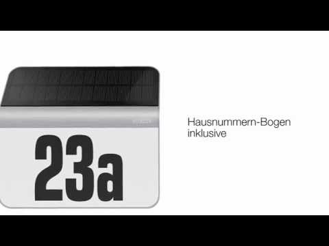 Die Zukunft der Hausnummernbeleuchtung. Ideal für Eingangsbereiche und Hausfronten. Automatisches Licht bei Dämmerung, stromunabhängig beleuchtete Hausnummer, Lithium-Ferrum-Akku für 365 Tage Licht im Jahr, inklusive Hausnummern-Aufkleber.