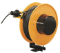 Kabelaufroller mit pulverbeschichteten Blechscheiben, 2-fach kugelgelagert, Arretierung durch Federraste, ohne Auszugkabel, mit 1,5m Anschlusskabel H07RN-F 5x4, mit Schleifringen 40 Amp. (4-pol.+PE)