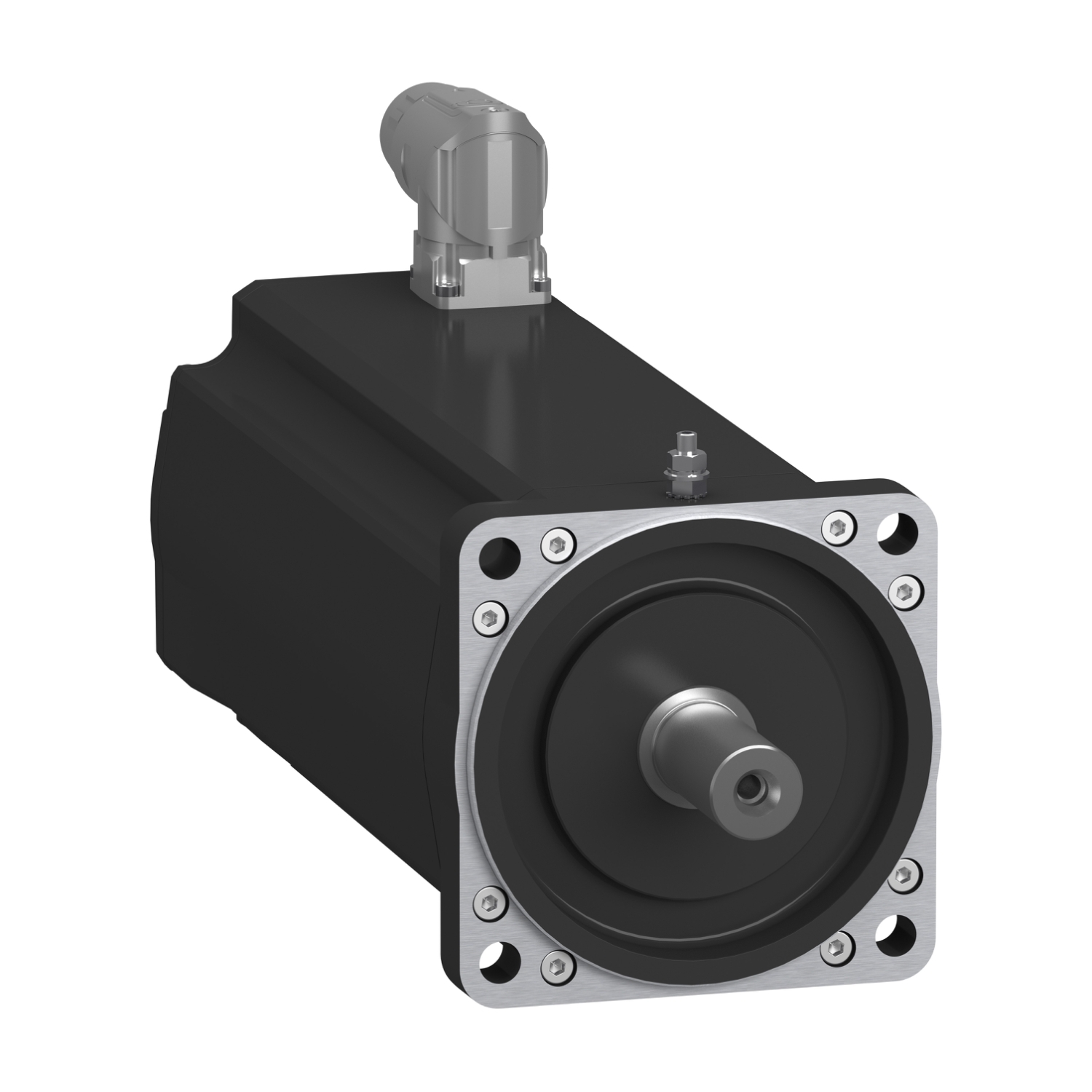 Lexium SH3 Servomotor für die motion-basierte Automatisierung mit PacDrive 3. Diese Reihe an AC-Servomotoren weist ein geringes Rotorträgheitmoment auf, das eine hohe Beschleunigungsfähigkeit für dynamische Anwendung ermöglicht. Dank der Wicklungstechnologie ergibt sich eine höhere Leistungsdichte in kompakter Ausführung. Dieser Servo hat ein Flanschmass von 100 mm und eine Motorlänge von 3 Stacks. Seine Wicklung ist auf das Drehmoment und Drehzahl optimiert. Er verfügt über ein Dauerstillstandsmoment von 8,0 Nm und ein Spitzenmoment von 28,3 Nm. Die spannungsabhängige Nenndrehzahl erreicht 4000 U/min bei einer Nennleistung bis 2,4 kW. Das Wellenende ist als glatte Welle ausgeführt. Der Absolutwert-Encoder ist als Multiturn mit hoher Auflösung von 18 Bit und Übertragung via DSL ausgeführt. Es ist keine Haltebremse integriert. Der Anschluss erfolgt mittels Hybridkabel für OMC (One-Motor-Cable) mit einem M23-Stecker an entsprechende Lexium 62-Servoantriebe. Die Schutzart der Welle und des Gehäuses sind in IP65 ausgeführt.