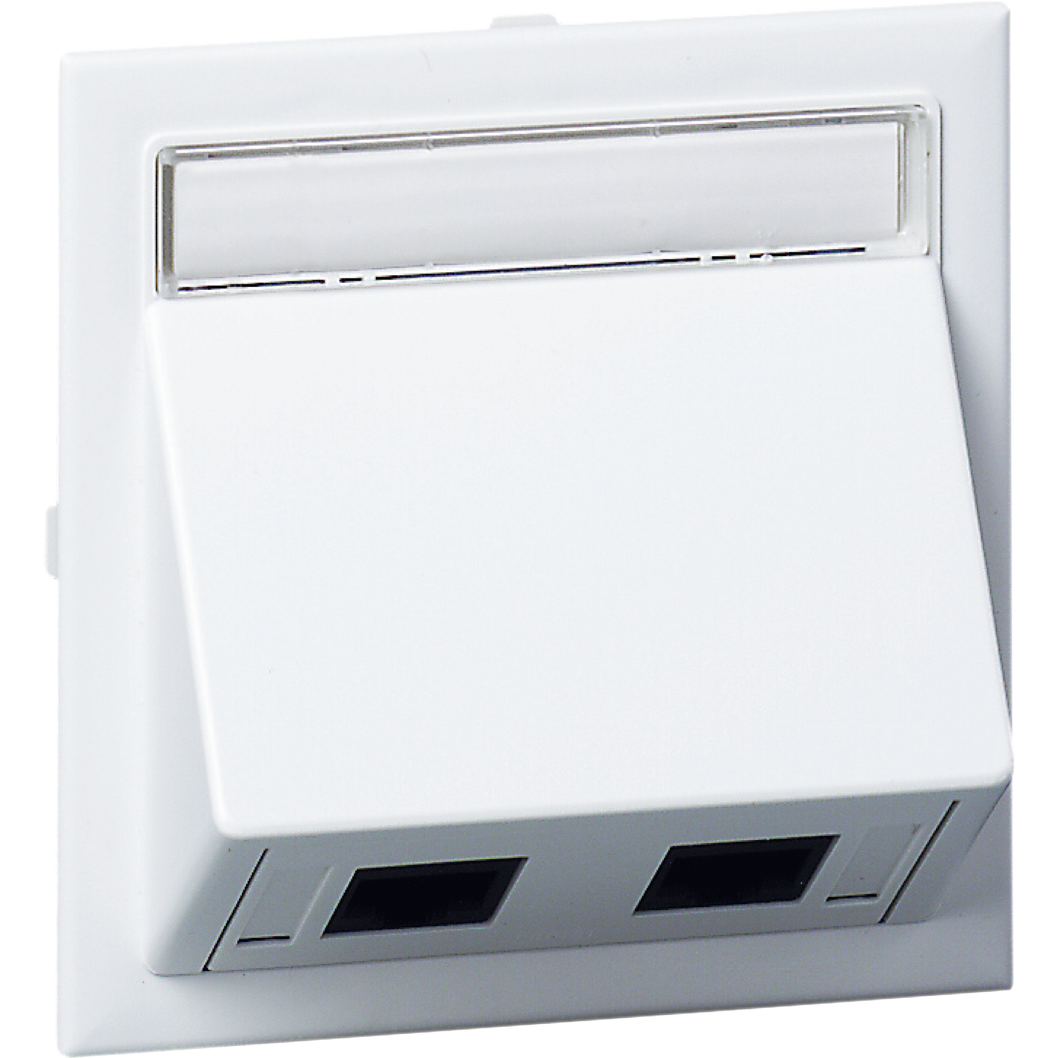 Anschlußsatz schräg 2XActassi 500 cat6 UTP weiß RAL9016 TypCYB-DP. Anschlusskit mit F80-Montagerahmen, Etikettenfenster mit Etikett, abgeschrägter oder flacher Abdeckung, Befestigungsblech und Steckverbindern. Abhängig von den Anschlüssen kann das Kit für strukturierte Kabelnetzwerke für paarige Kabel, allgemeine Niederspannung, Koaxial- oder Glasfaserverbindungen verwendet werden. Material PC/ABS.