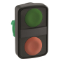 Frontelement für Doppeldrucktaster Harmony ZB5. Front grün/rot, Blende Kunststoff, unbeschriftet. 2 flache Drucktaster, grün unbeschriftet - rot unbeschriftet. Abmessung (BxHxT) 30x50x30 mm, Montagedurchmesser 22 mm, Gewicht 0,023 kg. Sie ist durch klare Farben und Berührungen durch bündige Elemente in der Ferne optisch deutlich zu erkennen und minimiert so Fehler in der Maschinensteuerung. Mechanische Lebensdauer 1000000 Zyklen. Kopfform rechteckig, standard. Mit hoher Vibrationsfestigkeut und chemischer Beständigkeit, Umgebungstemperatur -40 bis +70 Grad C. Das modulare Kunststoffprogramm mit 22mm Einbaumaß kombiniert einfache Installation, Effizienz, modernes Design, Flexibilität mit höchster Robustheit. Zertifizierungen nach RINA, UL gelistet, LROS (Lloyds register of shipping), BV, GL, CSA, DNV. Produktstandards gem. EN/IEC 60947-5-1, CSA C22.2 No 14, EN/IEC 60947-1, UL 508, EN/IEC 60947-5-4, JIS C 4520.