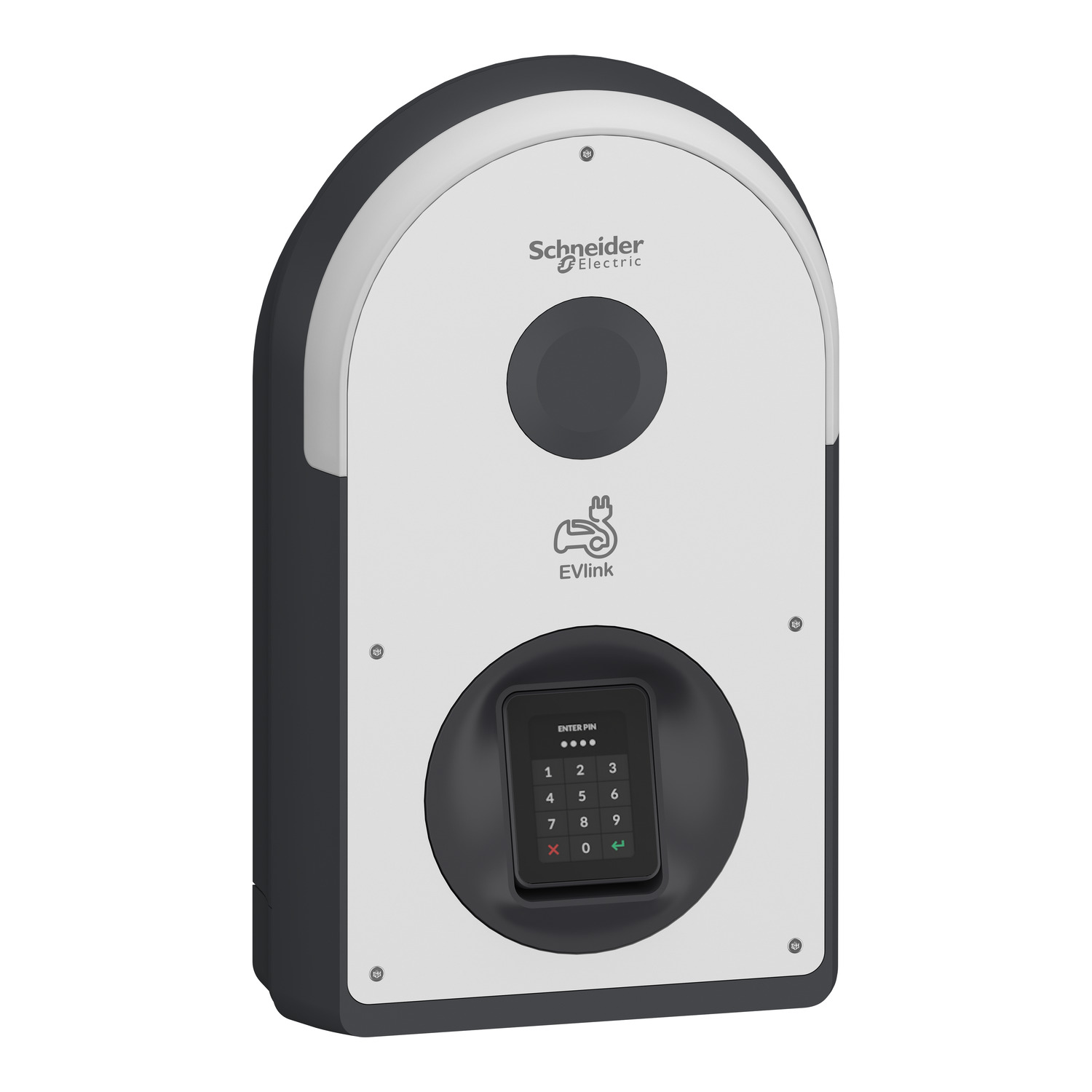 EVlink Pro Pay ist ein Bezahlterminal für EV-Ladeinfrastruktur, das die neueste AFIR-Verordnung erfüllt. Es enthält ein kontaktloses Zahlungsterminal mit Pin-Eingabefunktion, das die Zahlungsmethoden Visa, Mastercard, Apple Pay und Google Pay akzeptiert. Dank des integrierten 4G-Modems oder des Ethernet-Anschlusses ist es mit der Cloud verbunden. Es kann an der Wand montiert, auf einem Sockel aufgestellt oder in einem Metal-Kit integriert werden, genau wie ein EVlink Pro AC. Um betriebsbereit zu sein, muss das Zahlungsterminal über sein Cloud-Backend mit einer kompatiblen Backend-Plattform (CSMS) verbunden sein.