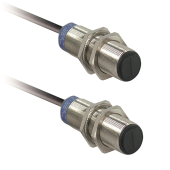 XU2-Optoelektronischer Sensor, Design 18mm, Einweg-Lichtschranke, Edelstahl, Schaltabstand Sn 15m, Spannungsversorgung 12-24V AC/DC, 2m Anschlussleitung.