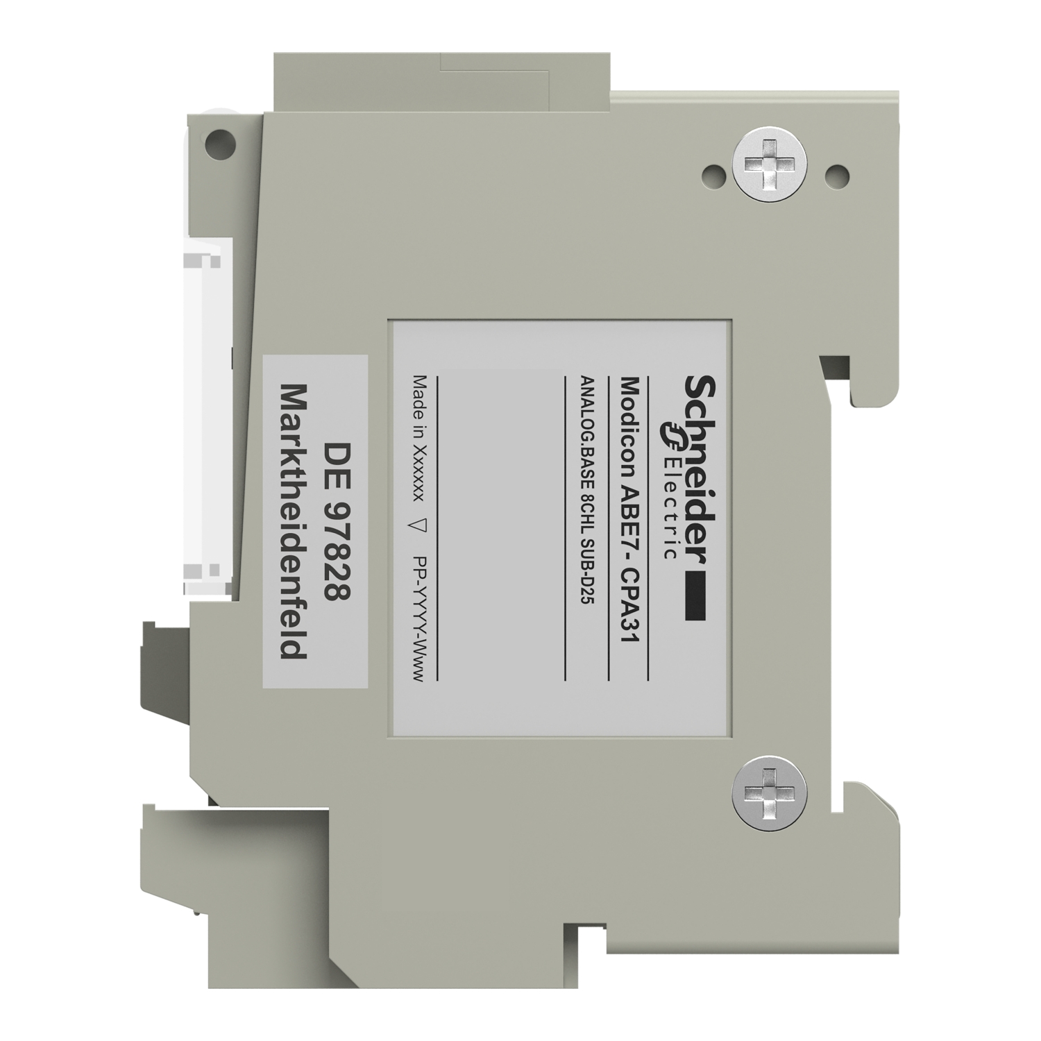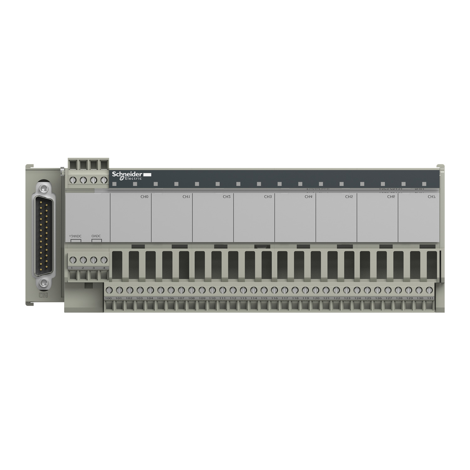 Klemmenblöcke Advantys Telefast ABE 7. Klemmenblock ABE7, zur Umsetzung von 8 analogen Eingangskanälen, für BMXAMI0800, BMXAMI0810. Anschluss Direktanschluss an 8 Eingängen,Versorgung 8 x 24 V mit Strombegrenzung aus 25 mA an den 8 galvanisch getrennten Strom-Eingängen.