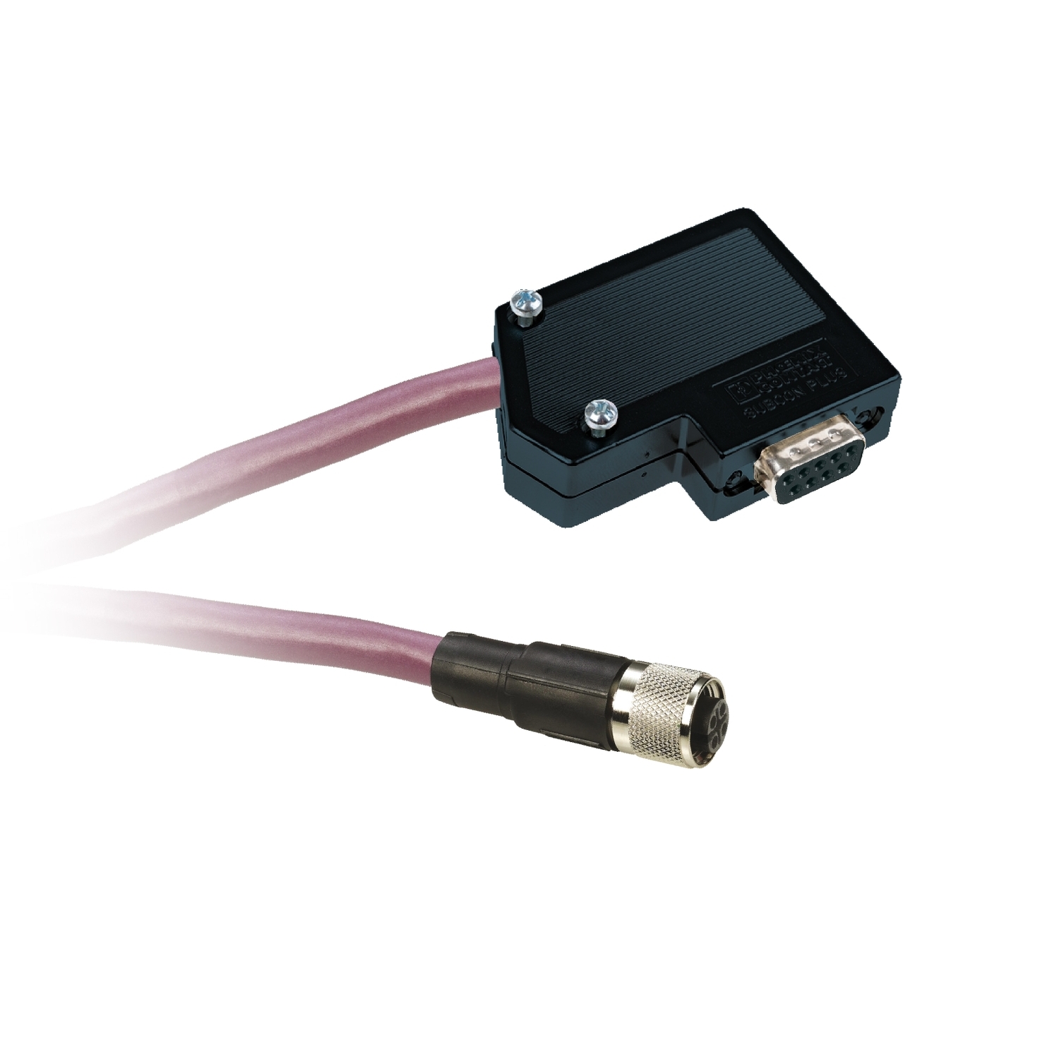 Anschlusskomponente für CANopen-Netzwerke. Konfektioniertes Kabel mit 9poliger SUB-D-Buchse und gerader, A-kodierten M12-Buchse. Die Leitungslänge beträgt 3 m.