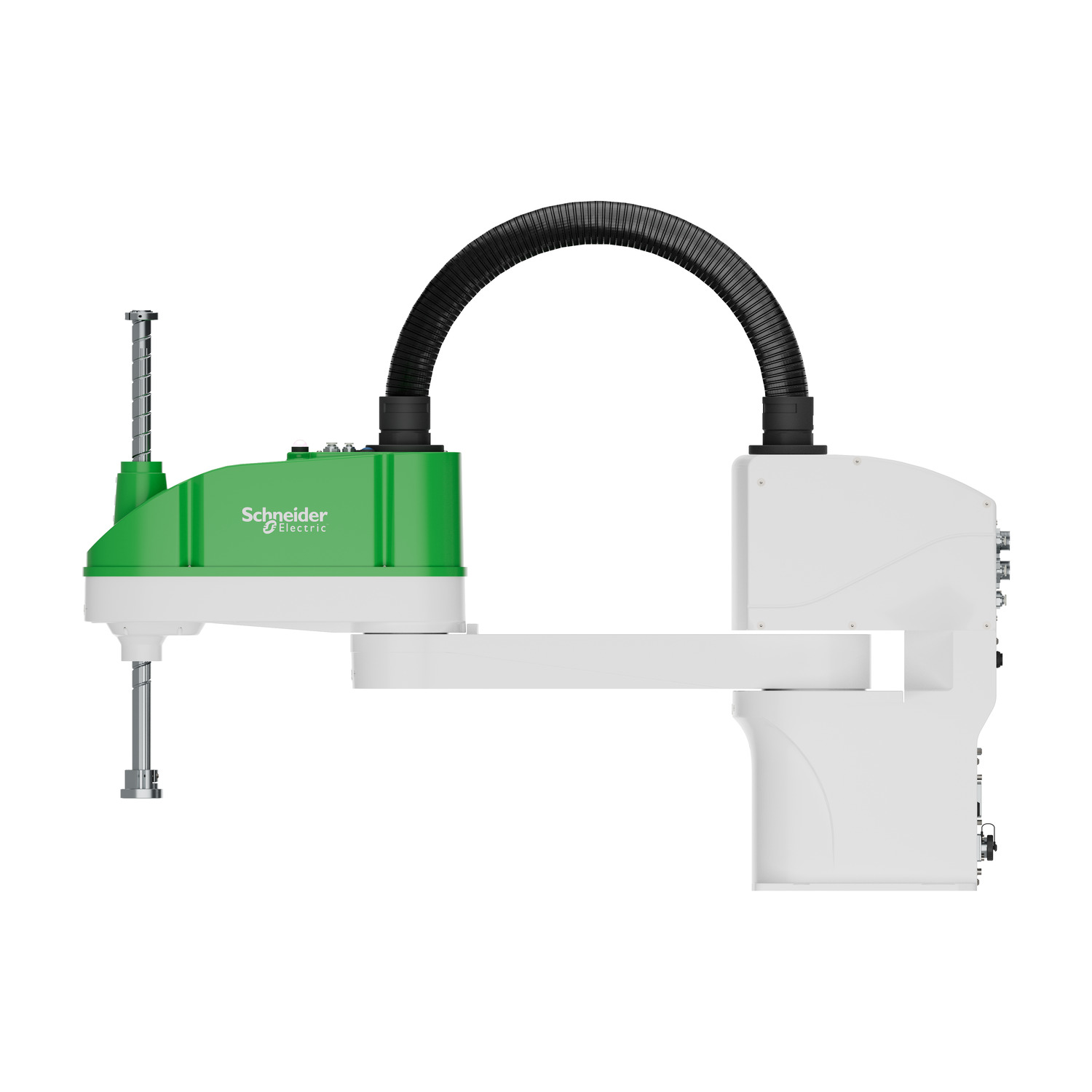 Lexium SCARA ist eine Reihe von Hochgeschwindigkeits-Industrierobotern mit hoher Bewegungsgenauigkeit. Der Lexium SCARA bietet mit seiner integrierten Steuerung ein ultrakompaktes, schnelles und präzises Robotersystem in einem. Er wurde entwickelt, um die Produktivität und Effizienz in Fertigungs- und Montageprozessen zu verbessern. Der kartesische Arbeitsradius des SCARA-Roboters beträgt 700 mm, die Hublänge 300 mm, die maximale Nutzlast 6 kg. Der Arbeitsbereich der ersten Achse beträgt 130 Grad, der der zweiten Achse 149 Grad und der der dritten 360 Grad. Die Höchstgeschwindigkeiten betragen 8450 mm pro Sekunde für die Achsen 1 und 2 zusammen, 1100 mm pro Sekunde für Achse 3 und 2150 Grad pro Sekunde für Achse 4. Der SCARA-Roboter wiegt 29 kg und kann einfach durch 6 Befestigungspunkte auf dem Boden montiert werden. Der Roboter kann für industrielle Anwendungen wie Montage, Be- und Entladen, Pick-and-Place, Verpackung und Materialtransport eingesetzt werden. Er entspricht den CE- und UKCA-Zertifizierungen. Lexium SCARA ist kompatibel mit den Motion Controllern LMC402, LMC802 und LMC902 und kann mit der Software EcoStruxure Machine Expert konfiguriert werden. Durch die nahtlose Integration über einen Sercos 3 Feldbus können Maschinen synchrone Abläufe realisiert werden. Die SCARA-Roboterreihe erweitert das Portfolio der Industrierobotik.