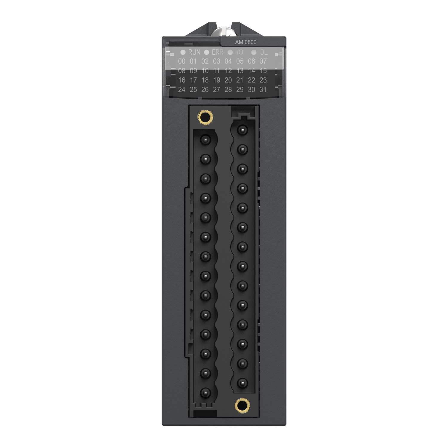 Dieses analoge, nicht isolierte Eingangsmodul ist Teil der Modicon X80-Reihe, einem Angebot an gemeinsamen Ein-/Ausgangs- und Kommunikationsmodulen, Stromversorgungen und Modulträgern für Modicon M340 und Modicon M580. Dieses Produkt besteht aus 8 Eingangskanälen. Dieses Produkt erfüllt die TC-Behandlungsanforderungen (Behandlung für alle Klimazonen) und kann in einem Temperaturbereich von 0°C bis +60°C/32°F bis 140°F betrieben werden. Modicon X80-Module bieten eine einheitliche Umgebung für den Einsatz von E/A-Modulen in Automatisierungsarchitekturen, indem sie den Ersatzteilbestand sowie die Wartungs- und Schulungskosten reduzieren. Es gibt keine Isolierung zwischen den Kanälen. Er ist mit einem 28-poligen Stecker für den elektrischen Anschluss ausgestattet. Dieses Produkt entspricht der Schutzklasse IP20 und bietet eine MTBF von 1.723.151 Stunden. Dieses Modul erfüllt die Anforderungen von Anwendungen in den Bereichen Transport, Wasser und Abwasser, verpackte Konsumgüter, Bergbau, Mineralien, Metalle, Stromerzeugung, Energie und Chemie sowie Rechenzentren. Dieses Produkt ist von CE, UL, CSA, RCM, EAC, UKCA und der Handelsmarine zertifiziert und erfüllt die Normen EN 61000-6-5 und EN 61850-3. Dieses Modul ist kompatibel mit Modicon M340, M580 (Lokale oder Remote-E/A) SPSen mit einer abnehmbaren 28-poligen Käfig-, Schraubklemm- oder Federkraftklemmleiste. Das Produkt muss in den Modulträger eingebaut und mit 2 Schrauben befestigt werden.