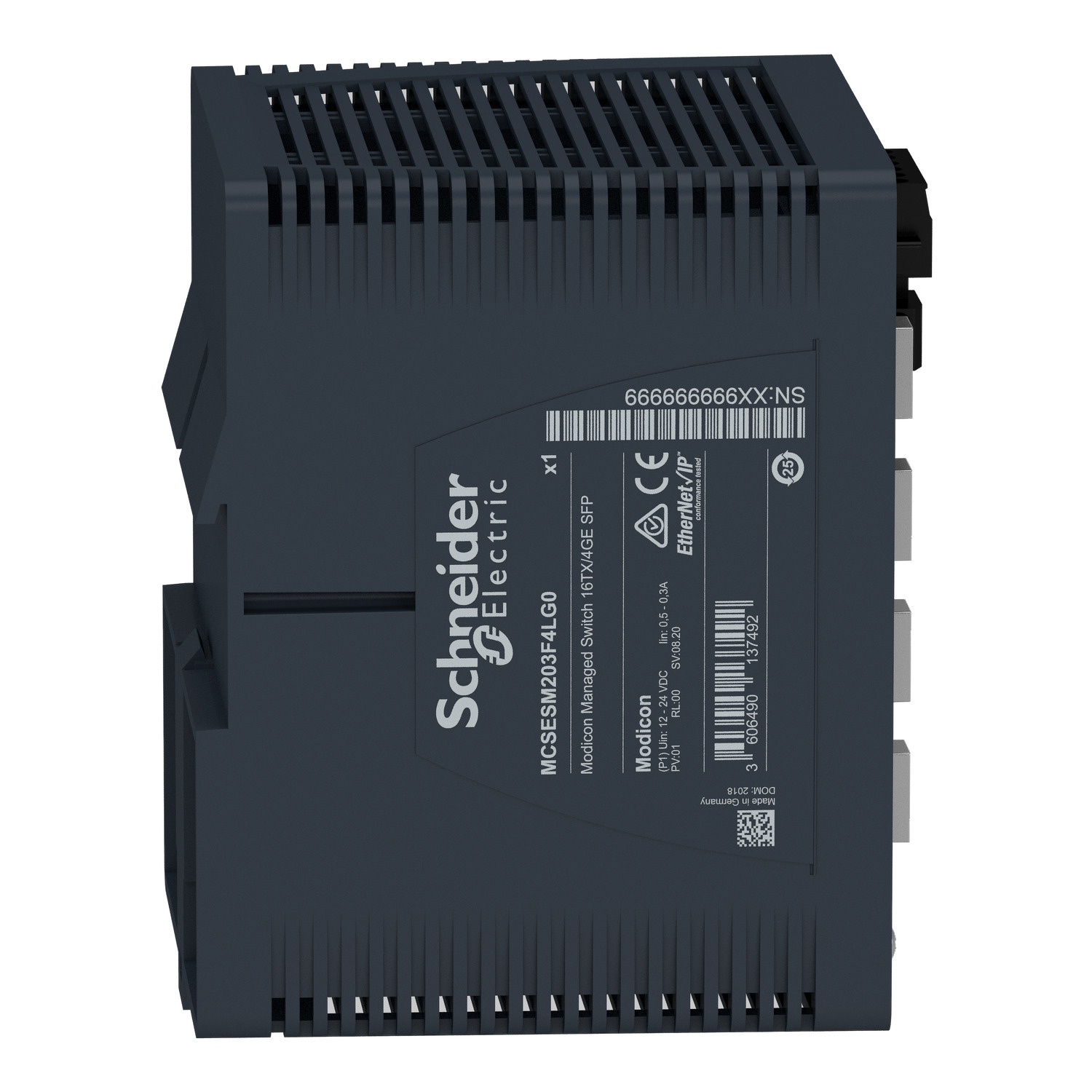 Dieses Produkt ist Teil des Modicon Switch Sortiments, ein Angebot von Modicon Managed Switch. Dieser Managed Switch wird mit Ethernet TCP/IP-Protokoll geliefert. Er verfügt über 16 Kupferkabel-Übertragungsports und 4 SFP-Ports, die eine Übertragungsrate von 1Gigabit unterstützen können. Er bietet einfache und komplexe Konnektivität für mehrere Ethernet-Geräte, Netzwerkmanagement, verbesserte Cybersicherheit und erweiterte Switching-Funktionen. Dieses Produkt arbeitet mit einer Leistungsaufnahme von 15 W und einer Nennspannung von 12 bis 24 V DC. Für jeden SFP-Port wird zusätzlich 1 W verbraucht. Es verfügt über einen abnehmbaren 6-poligen Stromversorgungsstecker. Es hat geschirmte Anschlüsse, die für mittlere, isolierte Netzwerke oder Systeme mit mittlerem Netzwerkverkehr und Netzwerken mit mittlerem Komplexitätsgrad geeignet sind. Es ist CE-, UL-, RCM-, DNV- und ATEX-zertifiziert und entspricht den Normen UL 61010, EN/IEC 61131 und EN/IEC 62368-1. Es ist für die Montage auf einer symmetrischen 35mm DIN-Schiene vorgesehen. Er hat einen geringen Stromverbrauch und eine kompakte Grundfläche. Außerdem bietet es einfache Konnektivität für mehrere Ethernet-Geräte. Die Modicon Networking-Reihe bietet Ihnen eine intelligente und flexible Möglichkeit, Ethernet-Lösungen in Ihren Betrieb zu integrieren, von der Geräteebene über das Steuerungsnetzwerk bis hin zu Ihrem Unternehmensnetzwerk.
