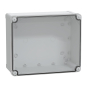 PanelSeT TBP Industrie-PC-Box mit transparentem Deckel H60. Innenmaße 275 x 225 x 120 mm. Ext 291 x 241 x 128 mm. Wandmontagegehäuse mit hohem transparentem Deckel. Schraubenverriegelung mit unverlierbaren Kunststoffschrauben (Schlitz). Zertifizierungen DEMKO, SEMKO, TÜV, UL. UL 508 A Standard. Feuerbeständigkeit 960°. Polycarbonat, Umgebungstemperatur für Lagerung/Betrieb (-15 bis 60 °C)/(-25 bis 80 °C). IP66 (NEMA 4.4X), IK08, Grau RAL 7035, Isolationsklasse II. Verpackungseinheit 5 Stk.
