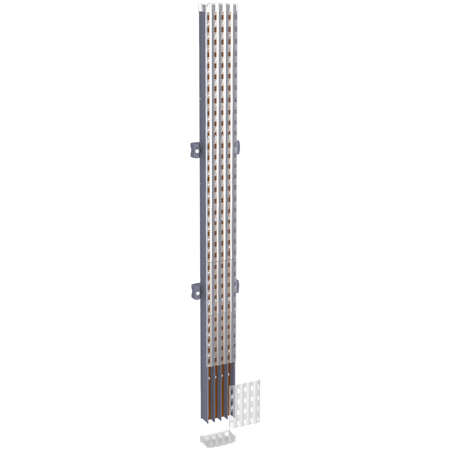 PrismaSeT P. Linergy BW isolierte 4-polige Sammelschiene für 160 A mit einer Bemessungsstoßstromfestigkeit (Ipk) 30 kA, Bemessungsisolationsspannung (Ui) 750 V AC, Bemessungsstoßspannungsfestigkeit (Uimp) 8 kV, Bemessungskurzzeitstrom (Icc) 150 kA. und einer Länge von 1000 mm.