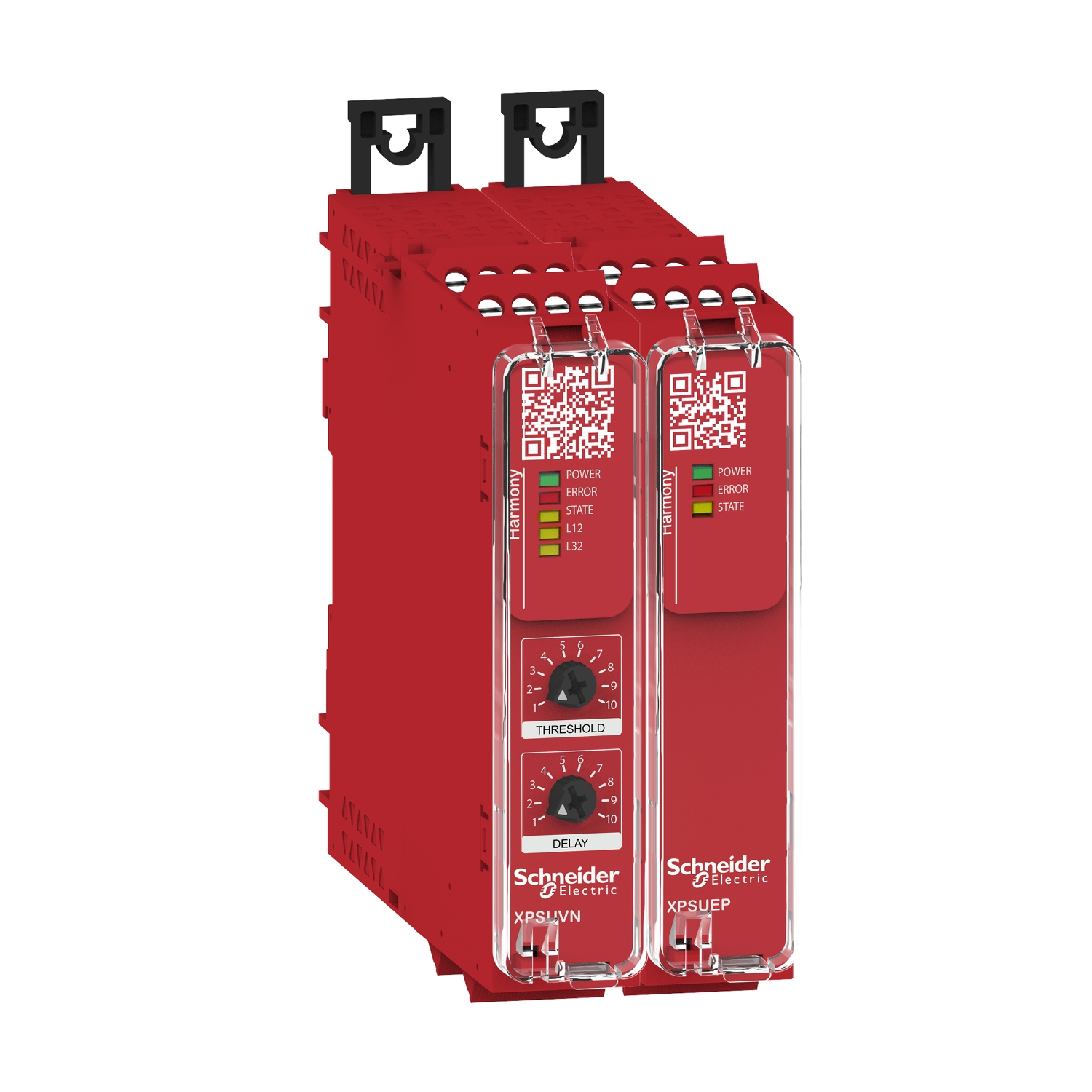 Die Sicherheitsrelais Harmony XPS Universal zeichnen sich durch ihren Funktionsumfang und Diagnosefähigkeit aus, die im Fehlerfall Stillstandszeiten verringert. Dieser Sicherheitsbaustein beinhaltet eine sichere Stillstandserkennung eines Motors durch Messung der Remanenzspannung, so daß keine weiteren Sensoren montiert werden müssen. Dazu wird die Motorleitung mit dem Stillstandswächter verbunden und nach dem Abschalten des Motors die durch die auslaufende Drehbewegung induzierte Spannung gemessen. Unterschreitet die gemessene Remanenzspannung den frontseitig eingestellten Grenzwert (50-500 mV), wird von einem Motorstillstand ausgegangen. Zusätzlich ist eine Verzögerungszeit von 0,5 bis 60 Sekunden ebenfalls frontseitig einstellbar. Es können DC- und AC-Motoren in 1- oder 3-phasigen Netzen bis 690 V auf Motorstillstand überwacht werden. Dieses Sicherheitsschaltgerät verfügt am Ausgang über 1 sicheren Relais-Schließerkontakt, 1 Halbleiter-Meldeausgang und 1 Diagnosemeldung. Mit Hilfe der qualifizierten Diagnose werden Zustände und Fehler erkannt und mittels eines Telegramms per Direktverdrahtung an einen Standardeingang einer SPS übertragen. Ein vorgefertigter Funktionsbaustein für gängige Steuerungssysteme wertet diese Meldungen auswerten, so daß der Bediener am Maschinendisplay umfassend informiert wird. Soll die Anzahl der Ausgänge erhöht werden, kann die Erweiterung XPSUEP14AP einfach seitlich über einen integrierten Steckverbinder angeschlossen und auf die Querverdrahtung zeitsparend verzichtet werden. Die Versorgungsspannung beträgt 24 VAC/DC und die Anschlüsse erfolgen über abziehbare Schraubklemmen. Anwendung bis zum Sicherheitsniveau PL e in Kategorie 3 oder SIL3 lassen sich realisieren. Vielfältige Zulassungen ermöglichen den internationalen Einsatz. Die Montage erfolgt durch aufrasten auf eine Hutschiene oder per Schraubbefestigung auf Montageplatten. Zum Schutz der Einstellungen unter der transparenten Abdeckung ist ein eindeutig nummeriertes Verriegelungsband beigefügt.
