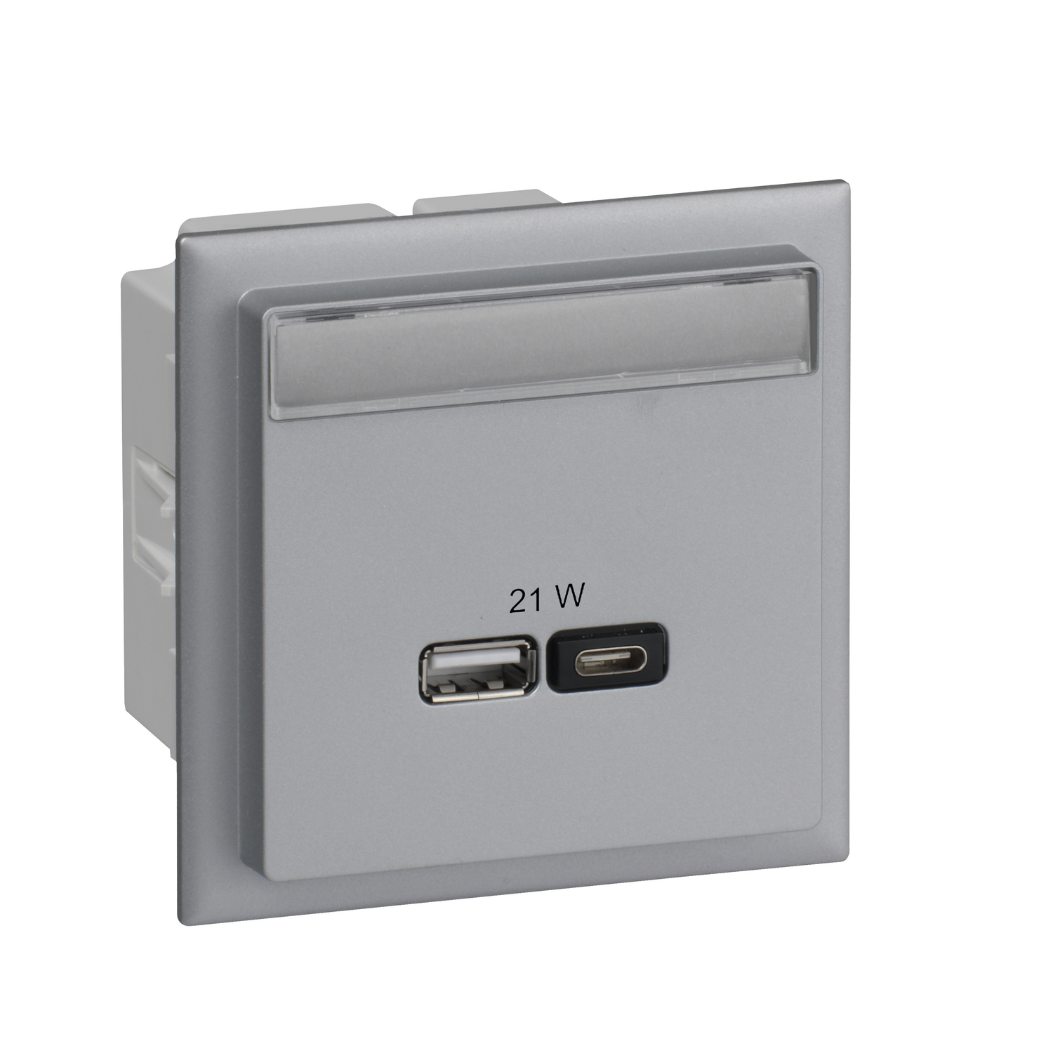 USB Ladestation A+C 2 Ausg. max. 2,4A Abdeckung Schriftfeld Alu TYPCYB USB A+C. USB-Ladeanschluss-Kit mit Dose, USB-Einsatz, Adapter, zwei Zugentlastungsvorrichtungen, Abdeckung und Etikett mit Etikettenfenster. Die maximale Stromstärke beträgt 2,4 A, wenn nur ein Ausgang genutzt wird, bei Nutzung beider Ausgänge ist die maximale Stromstärke aufzuteilen. Eingangsnennspannung 100-240 V AC. Ausgangsspannung USB 5 V DC. Material PC/ABS.