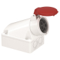 Pratika-Industriesteckdose mit Schraubklemmen mit unverlierbaren Schrauben. Montageart: Wandmontage. 3P+N+E Pol, Nennstrom 16A, Betriebsspannung 380VAC / 50 Hz. Abmessungen Grundplatte (B) 106mm x (H) 130mm. Schutzart IP44. Feuerbeständigkeit 850°C. Für flexible oder starre Kabel. Kabeleinführung 8mm bis 15mm. Klemmen für Querschnitt 1mm² bis 4mm². Farbe: grau (RAL 7035) mit rot zur Kennzeichnung der Betriebsspannung. PE Kontaktstellung 6h.