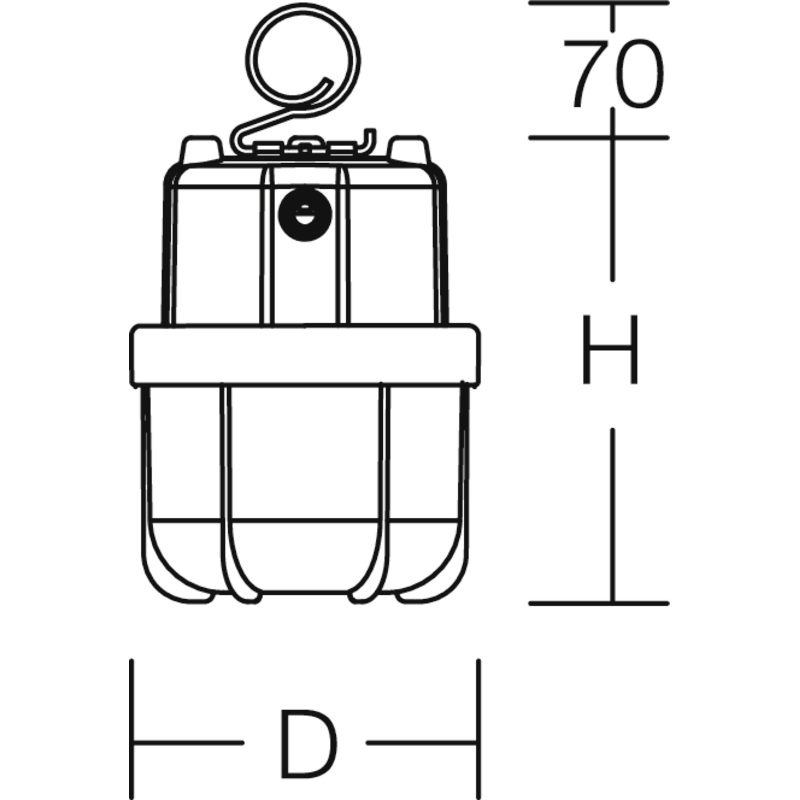 Kuppelleuchte. Schlag- und bruchfestes 2-Komponenten-Kunststoff-Gehäuse. Abdeckung opal, aus schlag- und bruchfestem Kunststoff (Polycarbonat). Homogene, weiche und blendreduzierte Ausleuchtung. Einklappbarer Aufhängehaken aus Edelstahl mit Fallsicherung. Als Pendelleuchte oder auf dem Boden stehend einsetzbar. Schwere Gummischlauchzuleitung H07RN-F für hohe mechanische Belastungen mit Netzstecker. Umfangreiches Zubehör optional erhältlich (Stative, Halteschienen, Magnethalter, etc.).