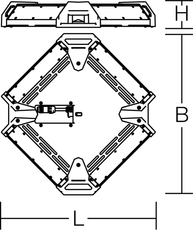 Großflächenleuchte. Gehäuse aus Aluminium, pulverbeschichtet. Ecken geschützt durch Kunststoffkappen. Hocheffiziente LED-Einheiten mit optimaler Lichtlenkung durch präzise Linsenoptik aus Kunststoff (PC) klar. Auf Stativ oder hängend einsetzbar. Beide Seiten getrennt dimmbar mit Potentiometer. Robuste PUR-Schlauchleitungen H07BQ-F für hohe mechanische Belastungen mit Netzstecker. Inkl. Adapter für Zapfen-Aufnahme (d=30 mm, DIN 14640) mit der Möglichkeit einer geraden oder geneigten Montage (30, 60, 90°). Inkl. Transporttasche.