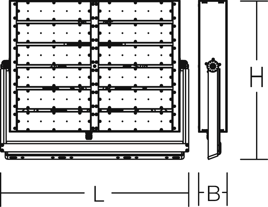 LED-Strahler. Gehäuse aus Aluminium, pulverbeschichtet. Haltebügel aus rostfreiem Stahl, pulverbeschichtet. Hocheffiziente LED-Einheiten mit optimaler Lichtlenkung durch präzise Linsenoptik aus Kunststoff (PC) klar. Lichtrichtung feinstufig einstellbar.