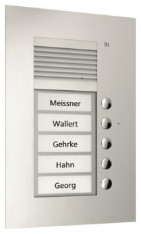 Kompakte Außenstationen zur Unterputzmontage für bis zu 30 Wohneinheiten, Namensfelder aus bruchsicherem Acrylglas und mit energiesparenden LEDs beleuchtet, Öffnen ohne Schrauben durch patentiertes win:clipTM