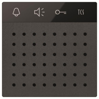 Funktionsmodul der Serie AMI, Anzahl Klingeltasten: für bis zu 16, Montageform: frontbündige Unterputzmontage, Material / Farbe: Aluminium, eloxiert schwarz, Anschluss Klingeltastenmodul: über, 4-poligen Servicestecker, Sprachübertragung: Voll-Duplex, (für Innenstationen mit Hörer), Lautstärke Sprachausgabe: einstellbar, Lautstärke Quittungston: einstellbar, Speicher Anlagenkonfiguration: tauschbar gesteckt, Lichtschaltfunktion: an bauseitiger Klingeltaste, Sprechverbindung während Türbereitschaftszeit:, einstellbar, Mikrofon: integriert und absetzbar, Funktionserweiterung Türöffnen: an R-Klemme, Anzahl Drähte: 3-Draht notwendig, Technologie: 2-Draht-TCS:BUS, Stromaufnahme, in Ruhe: 5,9 mA, Stromaufnahme, maximal: 13,5 mA, lichtes Maß HxB mm: 82x82, Außenmaß HxBxT mm: 105x105x28, zulässige Umgebungstemperatur: -20 bis +50 °C, Das TCS:BUS Sprechenmodul ist nur mit Klingeltasten-, modulen oder/und dem Displaymodul LCD Grafik, 3 Tasten, kombinierbar. Für Außenstationen mit dem Displaymodul, LCD Grafik wird das Lautsprechermodul verwendet., Alle anderen Module sind frei kombinierbar