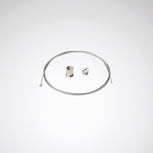 Seilabhängung für Hängeleuchten der Baureihe Finea FN5 und FN7 mit Deckenbefestigungshülse. FN3 / FN5 / FN 7. Für Abhängelängen bis 2000 mm. Ersatzteil, Verpackungseinheit 1 Stück, für einen Aufhängepunkt. Zur Fixierung der Seilabhängung am Lichtkanal wird das separate Ersatzteil TOC 7952300 (Seilschlitten) benötigt.